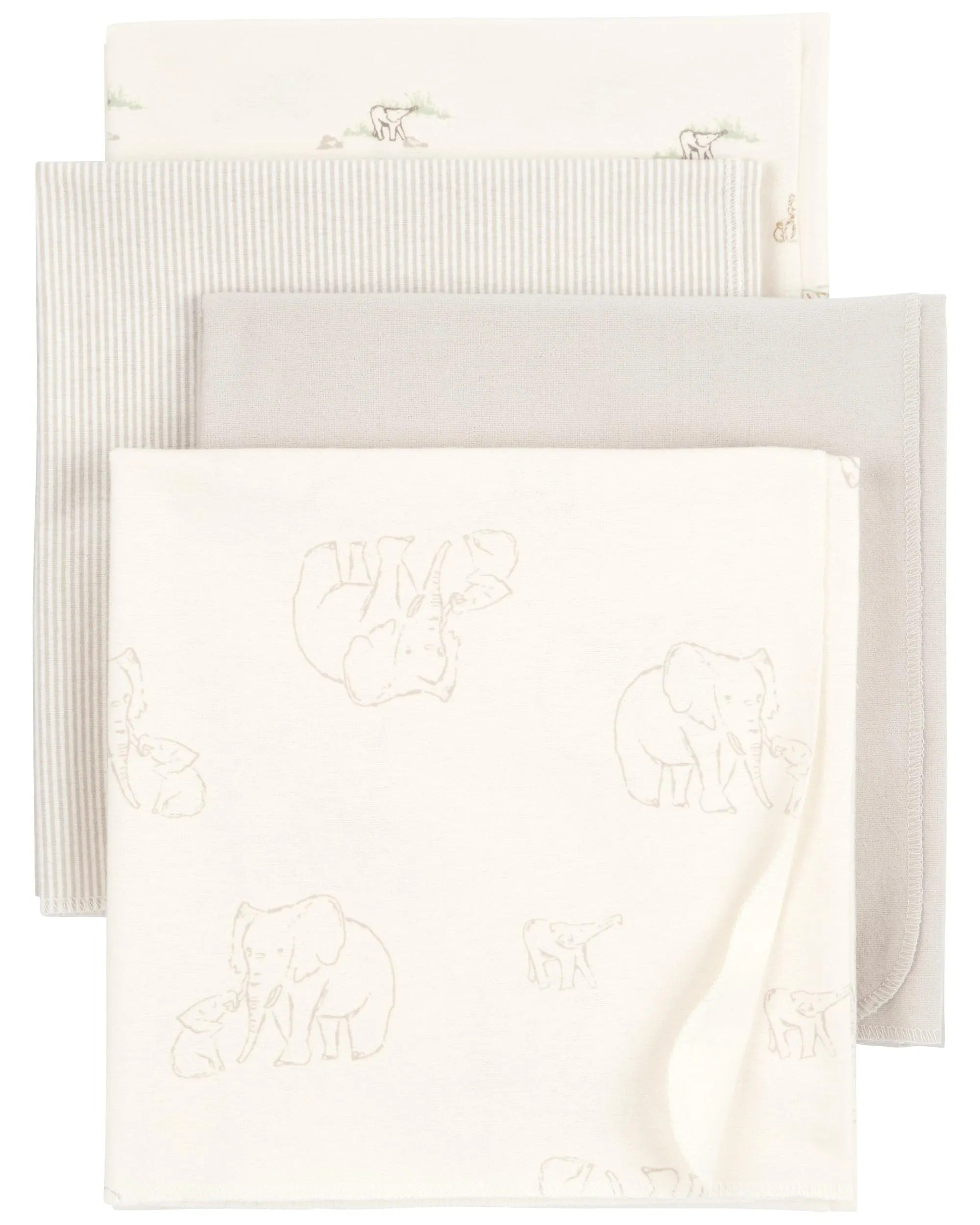 Carter’s 4 Parça Battaniye Seti, %100 pamuktan üretilmiştir. Fil ve çizgi desenli tasarımlarıyla sevimli bir görünüm sunar. Yumuşak dokusu, hafif ve taşınabilir yapısıyla hem evde hem dışarıda kullanıma uygundur. Unisex olarak tasarlanmıştır.