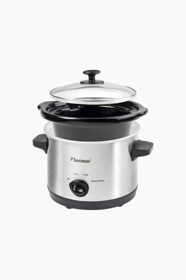 Bestron 1.5 L slow cooker, düşük ısıda yavaş pişirme yöntemiyle et, sebze ve çorbaları lezzetini ve besin değerini koruyarak hazırlar. 2 kişilik porsiyonlara uygun kapasitesi ve 3 kademeli termostatıyla küçük evler için ideal bir çözümdür.