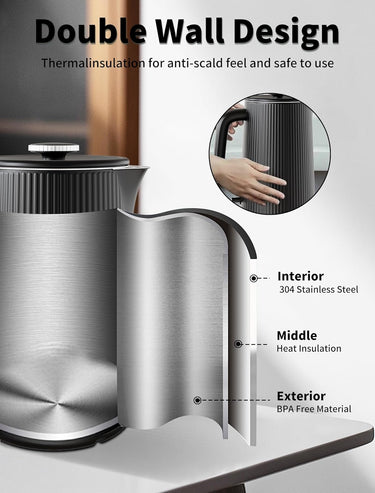Çift Duvar Tasarımı: Su daha uzun süre sıcak kalırken dış yüzey serin kalır, yanıkları önler