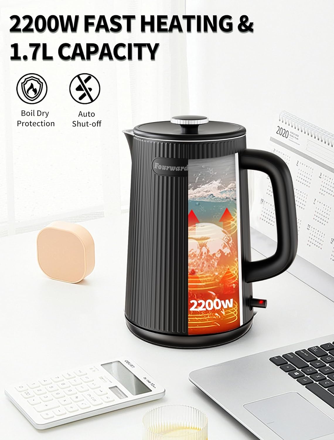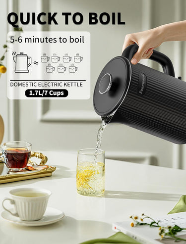 1.7L Paslanmaz Çelik Su Isıtıcısı 2200W Hızlı Kaynatma, Çift Duvarlı, BPA İçermez