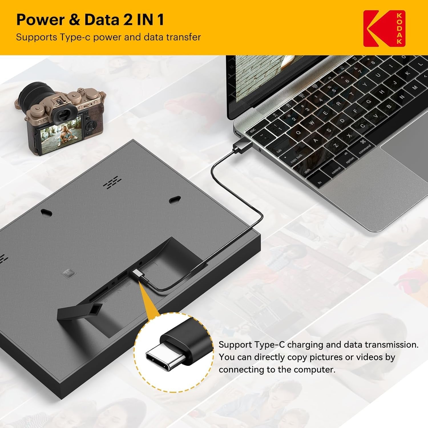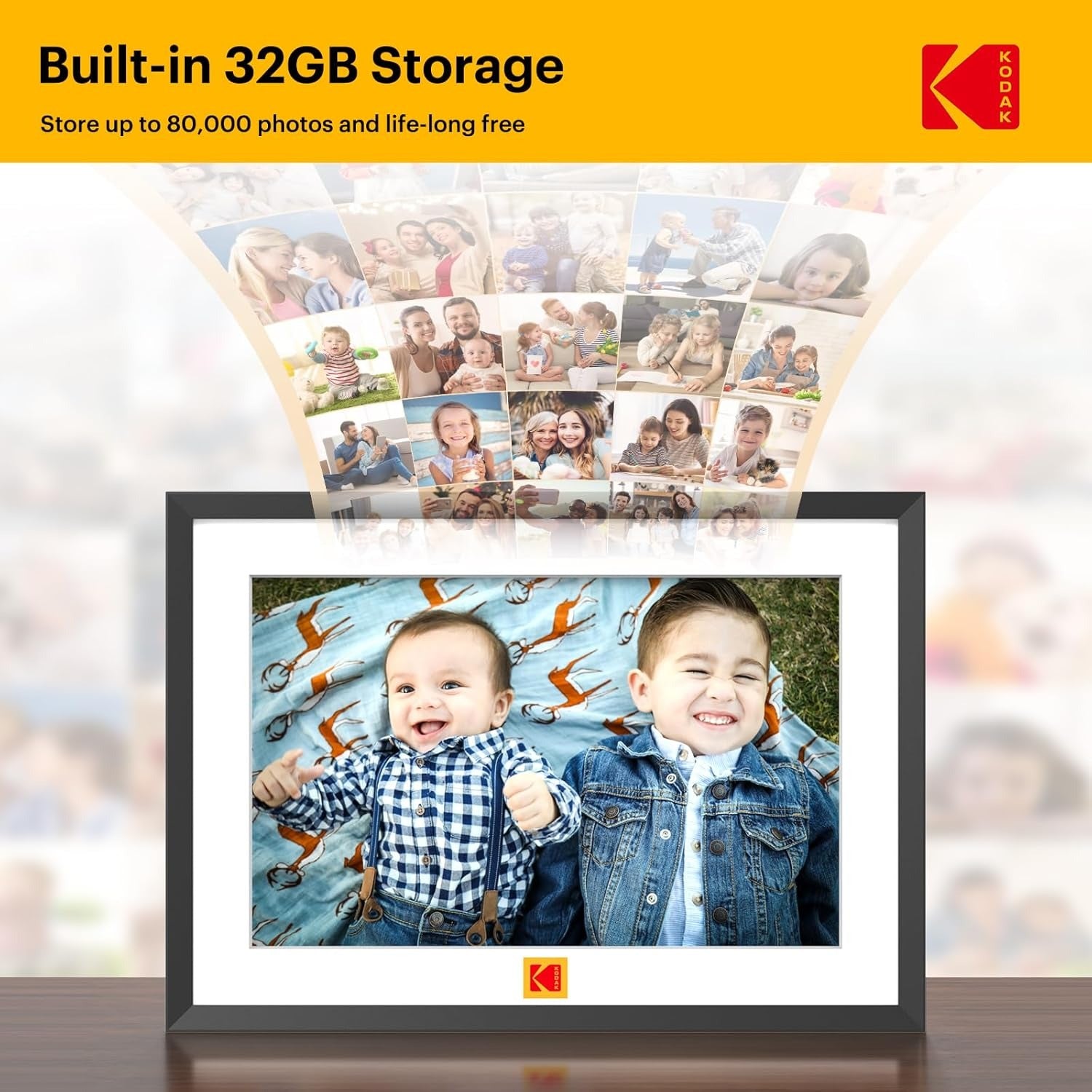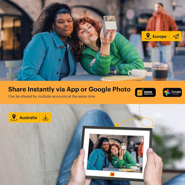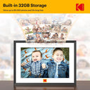 Kolay Kurulum ve Otomatik Dönme: "Kodak Dijital Çerçeve" uygulaması ile Wi-Fi bağlantısı kurarak anında fotoğraf veya video yükleyebilir, metin ekleyebilirsiniz. Dijital çerçeve, Google Fotoğraflar üzerinden paylaşım yapmanıza olanak tanır.