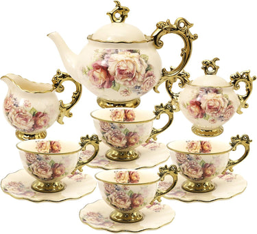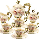 15 Adet Gül Çiçeği İngiliz Seramik Çay Seti, Dayanıklı Porselen Malzeme