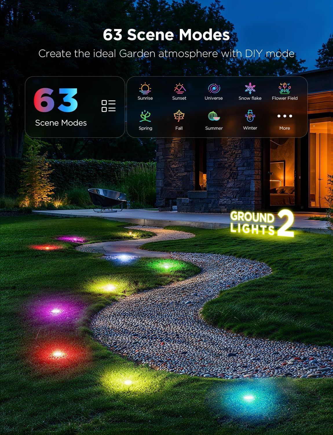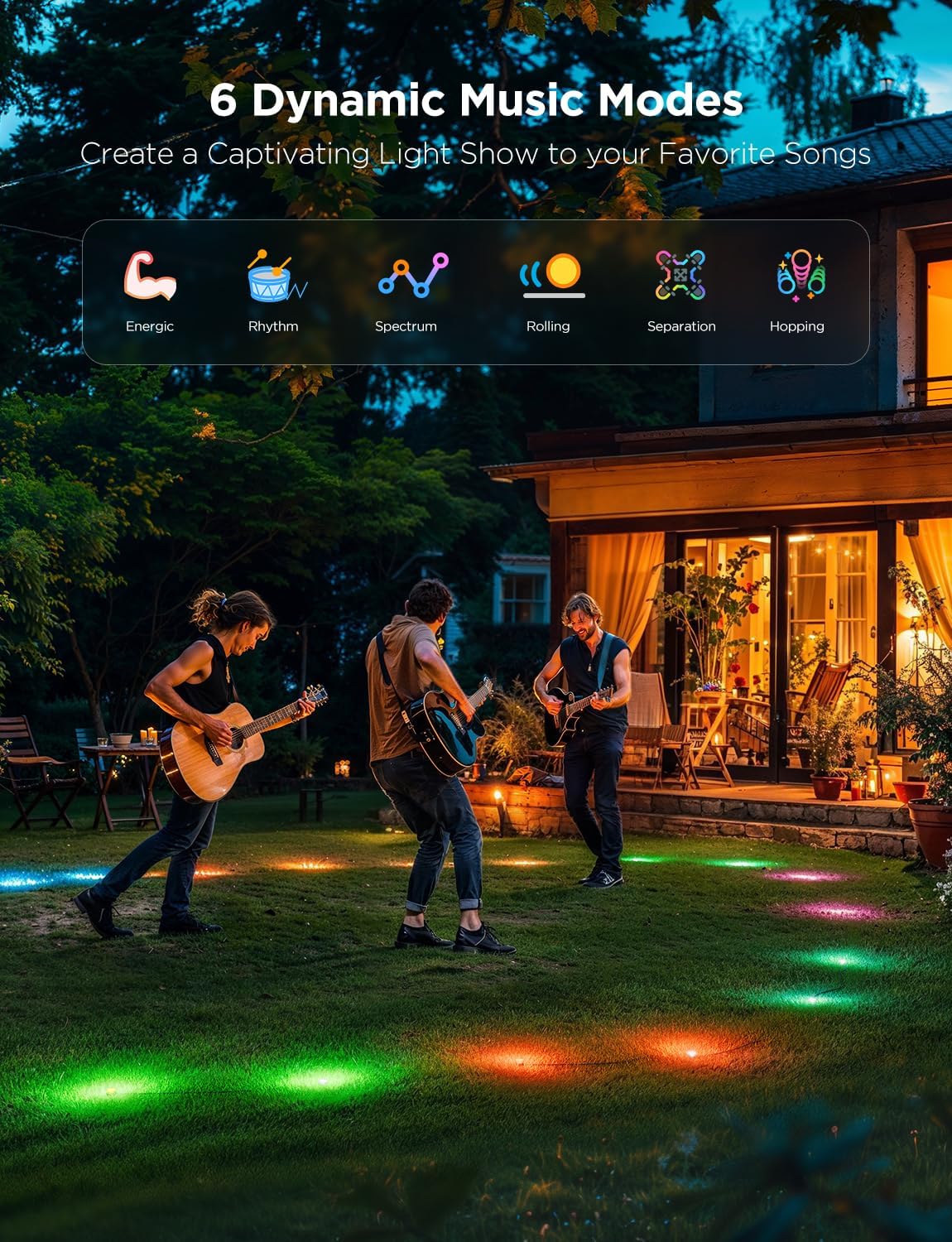 RGBIC Teknolojisi ile Çok Renkli Gösterim: 16 milyon renk seçeneği ve 63 sahne modu ile her bir lamba farklı renkte yanabilir; benzersiz bir bahçe veya yol aydınlatma tasarımı sağlar.
