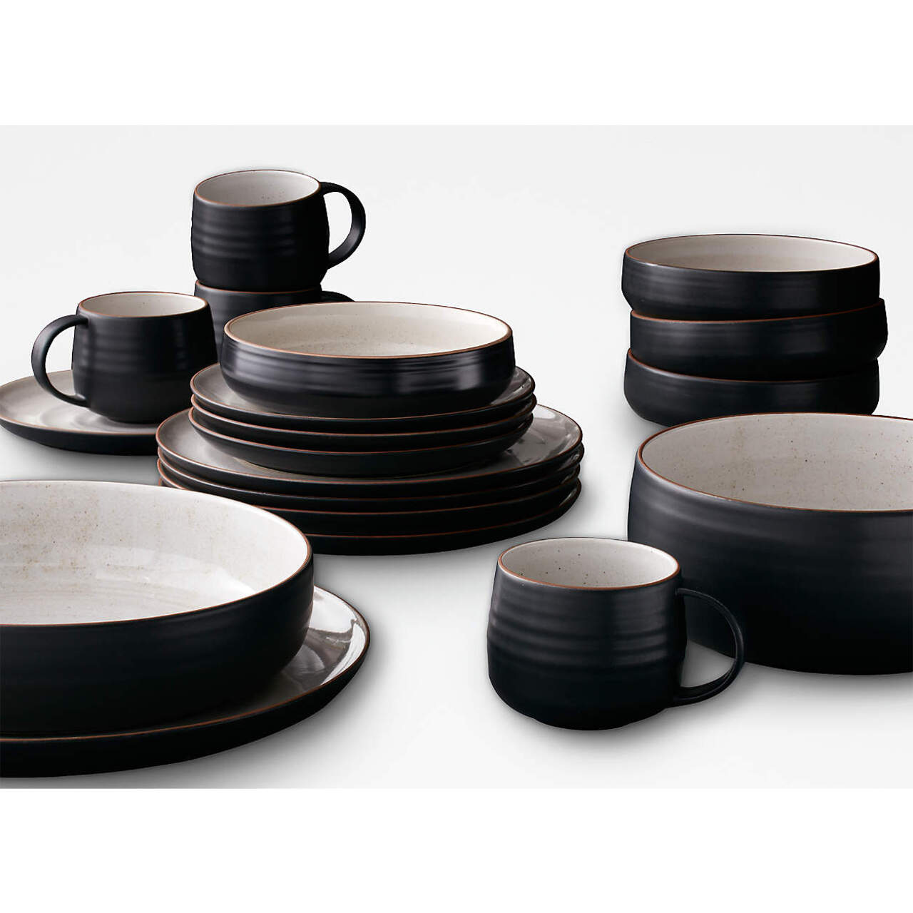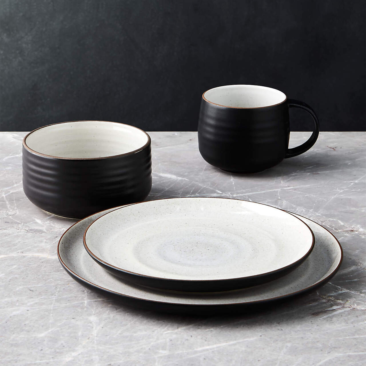 - Mat siyah dış yüzey, parlak beyaz ve benekli iç sır ile rustik bir kontrast oluşturur.