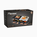 Bestron 2-in-1 Raclette Party Grill, 8 kişiye kadar kullanım sağlayan güçlü 1400 W yapısıyla hızlı ısıtma ve eşit pişirme sunar. Doğal taş plaka ve çift yüzeyli yapışmaz grill plaka ile yağsız pişirme mümkündür. 8 tava ve 8 spatula ile parti ve davetler için idealdir.