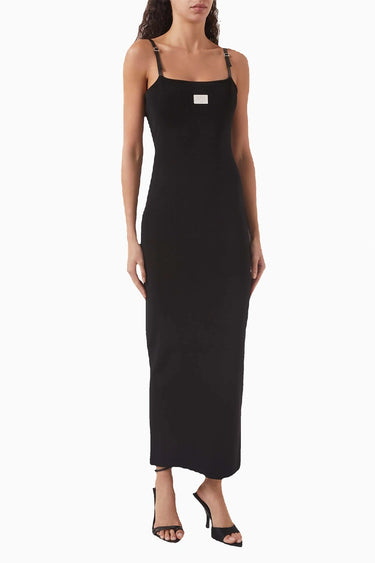 Siyah Maxi Elbise - Viskoz Karışım - Ayarlanabilir Askılı - Rib-Knit Tasarım