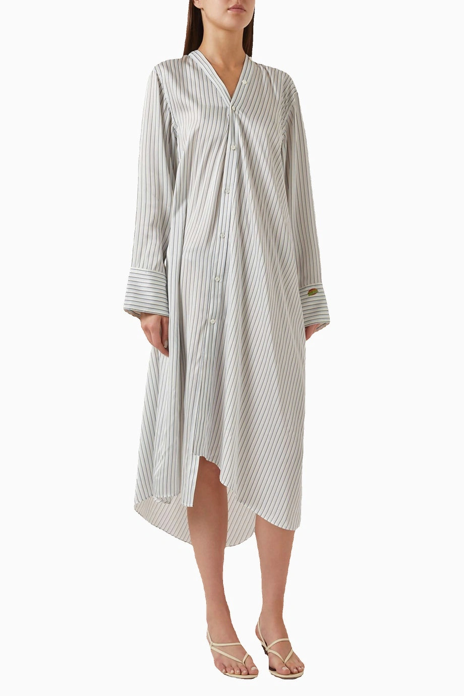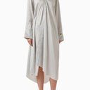 Şıklığı ve modern tasarımı bir araya getiren bu asimetrik gömlek elbise, Acne Studios'un zarafetle harmanlanmış viskon kumaşından üretilmiştir. Hafif dokusuyla akıcı bir drape sunarak, her adımda özgürce hareket etmenizi sağlar. Rahat kesimi sayesinde, gün boyu konforla şıklık arayanlar için ideal bir tercih. Klasik gömlek silüetinde yer alan eğlenceli ve rafine detaylar, bu elbiseyi sıradanlıktan uzaklaştırıyor. Özenle konumlandırılmış nakışlı yamalar, elbiseye sanatsal bir dokunuş katıyor.
