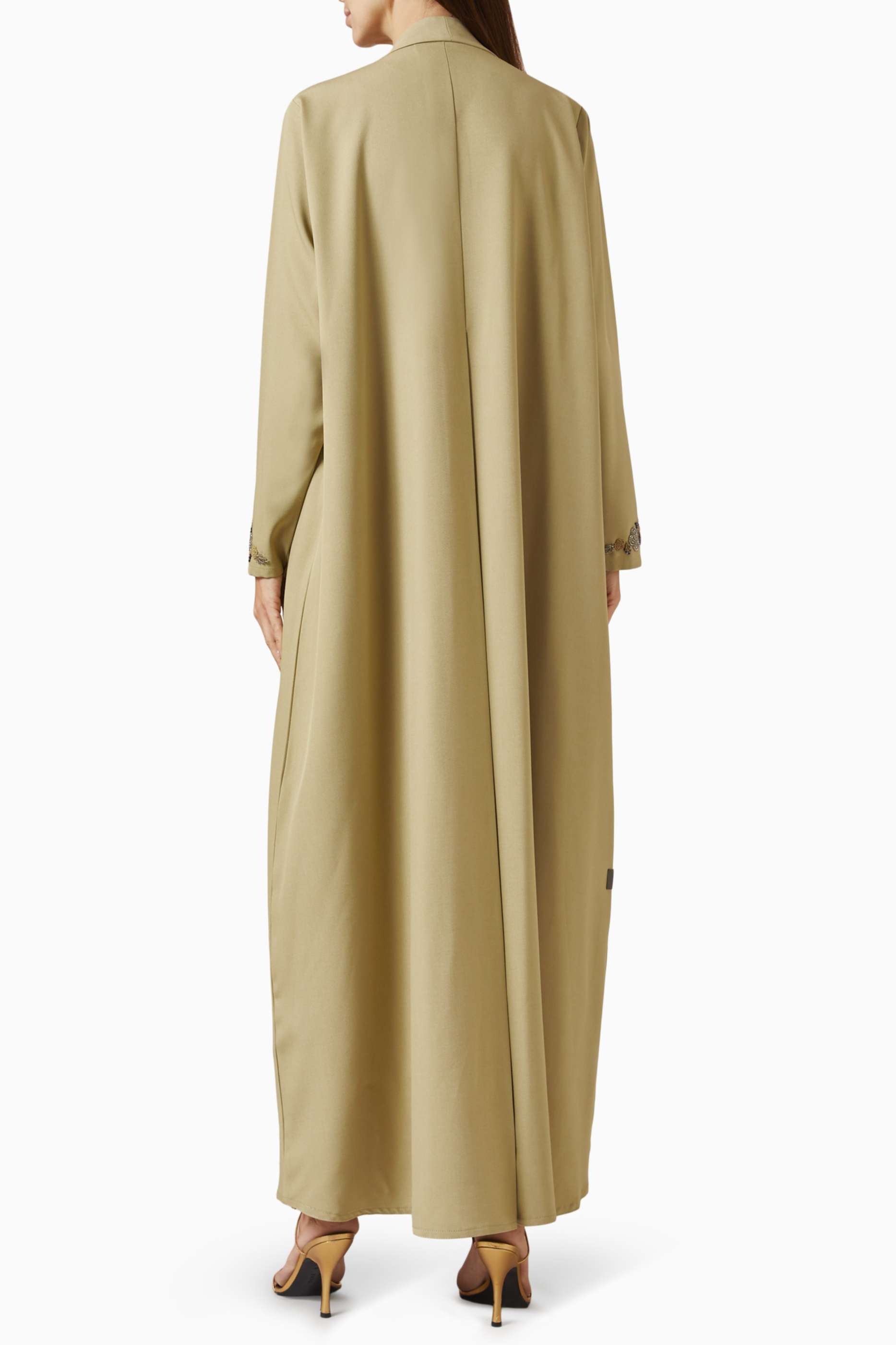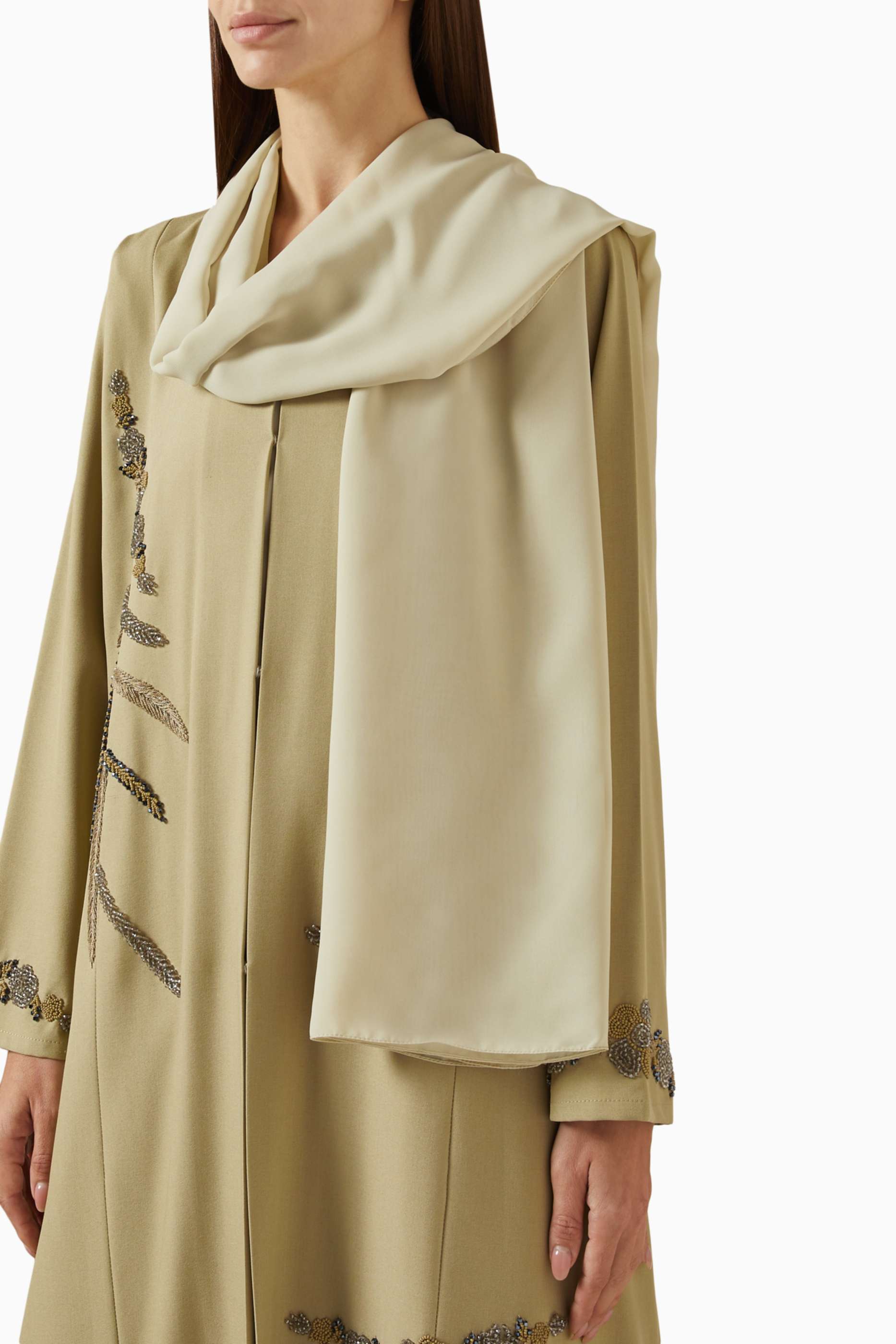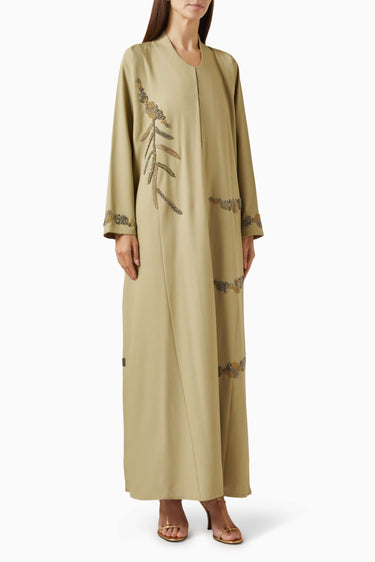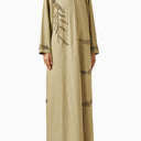 Bej rengi krepten üretilmiş iğne oyası detaylara sahip Abaya, zarif tasarımını öne çıkaran zamansız bir parçadır. Rauaa Official markasının bu şık abayasını, hem resmi davetlerde hem de akşam etkinliklerinde tercih edebilirsiniz. İnce boncuk süslemeleri, her adımda size hafif bir ışıltı katarak zarif bir görünüm sunar. Klasik topuklu ayakkabılarla ve sade aksesuarlarla kombinleyerek şıklığınızı tamamlayabilirsiniz.
