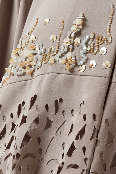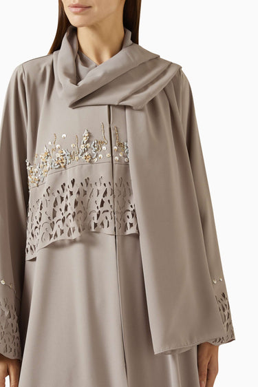 Modern ve şık bir görünüm arayanlar için mükemmel bir seçenek olan laser kesim süslemeli abaya, Rauaa Official'ın güncel sade giyim anlayışını yeniden tanımlıyor. İnce lazer kesim detayları ve zarif süslemeleriyle dikkat çeken bu parça, markanın sanatını ve ustalığını ön plana çıkarıyor. Hem gündüz hem de akşam davetleri için şık topuklu ayakkabılar ve nötr tonlarda bir çanta ile kombinleyebilirsiniz.