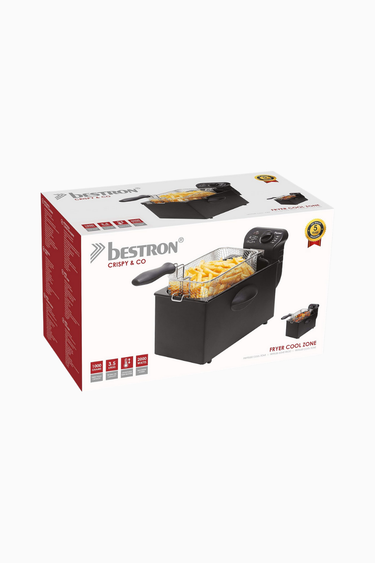 Bestron Cold Zone Fritöz, 3.5 L kapasitesi ve 2000W gücüyle çıtır sonuçlar sunar. Ayarlanabilir ısı kontrolü, uzun ömürlü yağ kullanımı ve tamamen sökülebilir yapısı ile hijyenik, güçlü ve premium bir kızartma deneyimi sağlar.