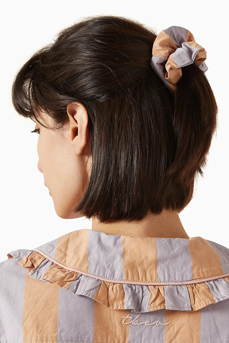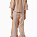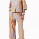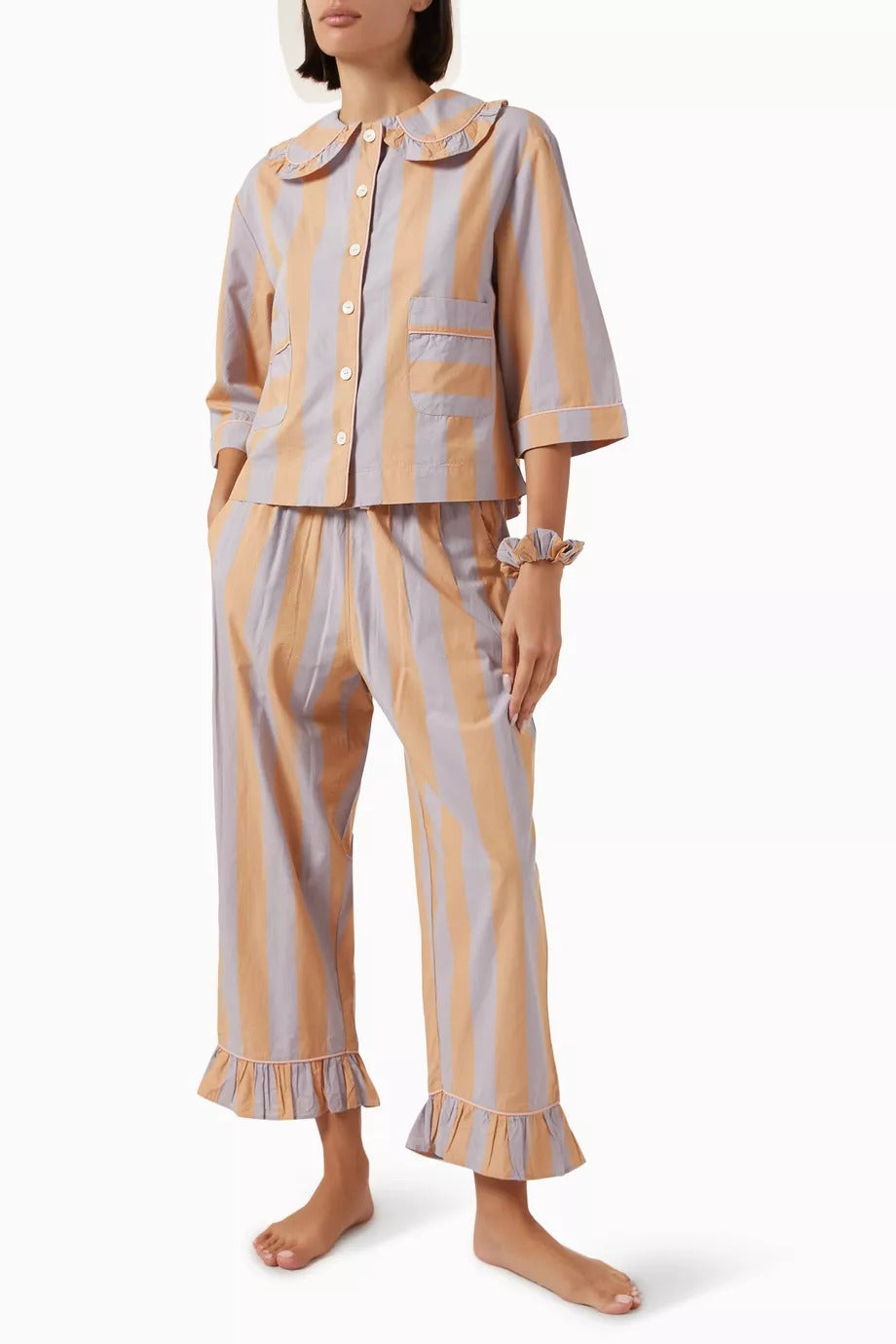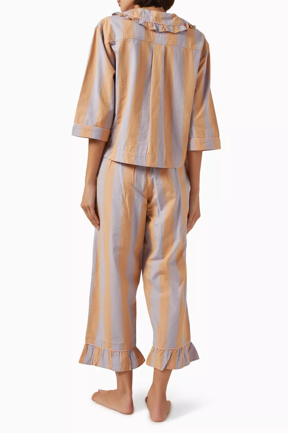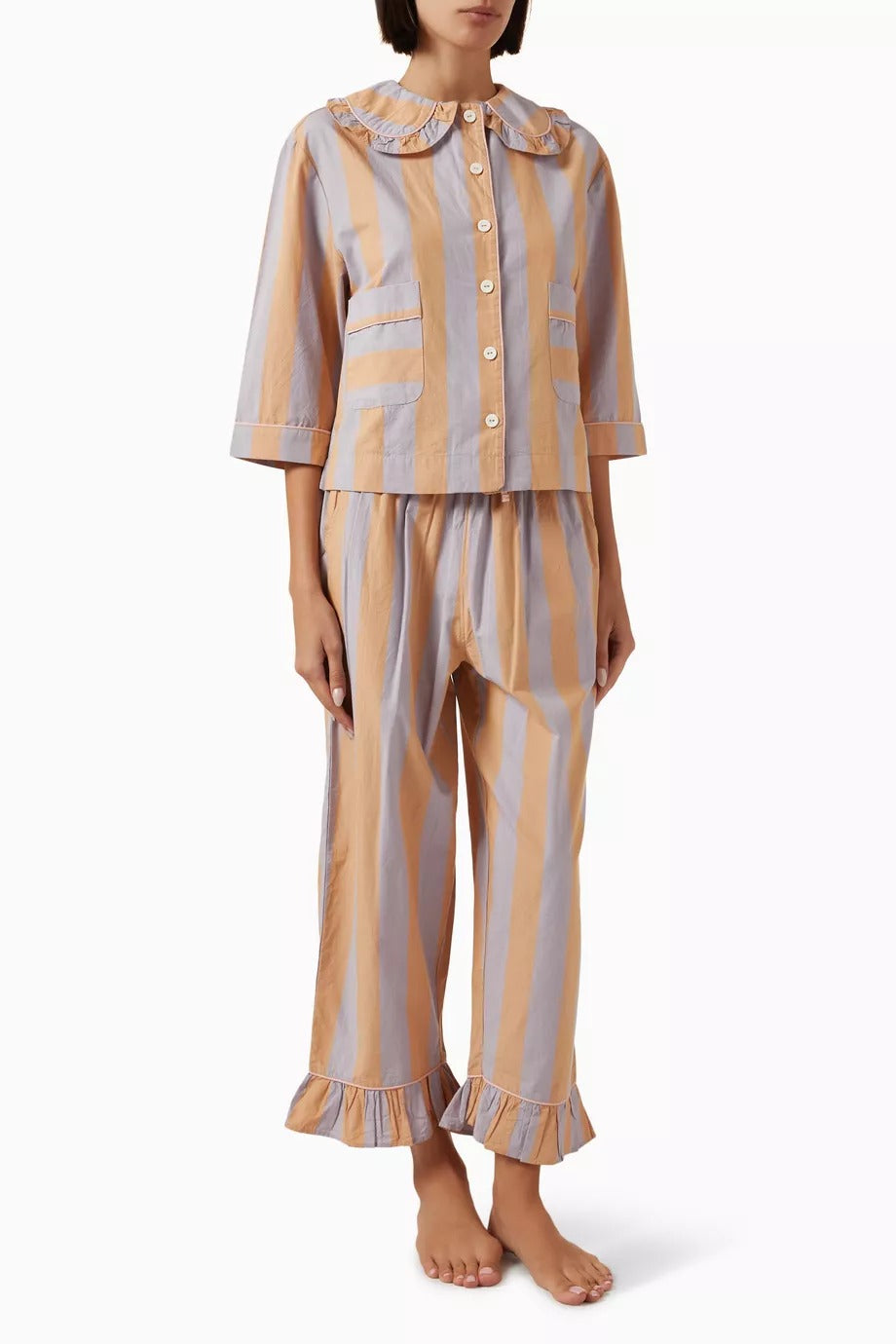 3 Parça Pamuklu Turuncu Çizgili Pijama Seti Fırfır Detaylı Lüks Tasarım