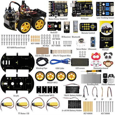 KEYESTUDIO 4WD Akıllı Araba Robot Kit, Arduino tabanlı bir robotik STEM projesidir. Programlama ve elektronik montaj hakkında uygulamalı deneyim kazandıran bu set, başlangıç seviyesindeki öğrenciler için idealdir. 17 öğretici projeyle öğrenmeyi destekler. Eğitici ve eğlenceli bir robotik deneyim.