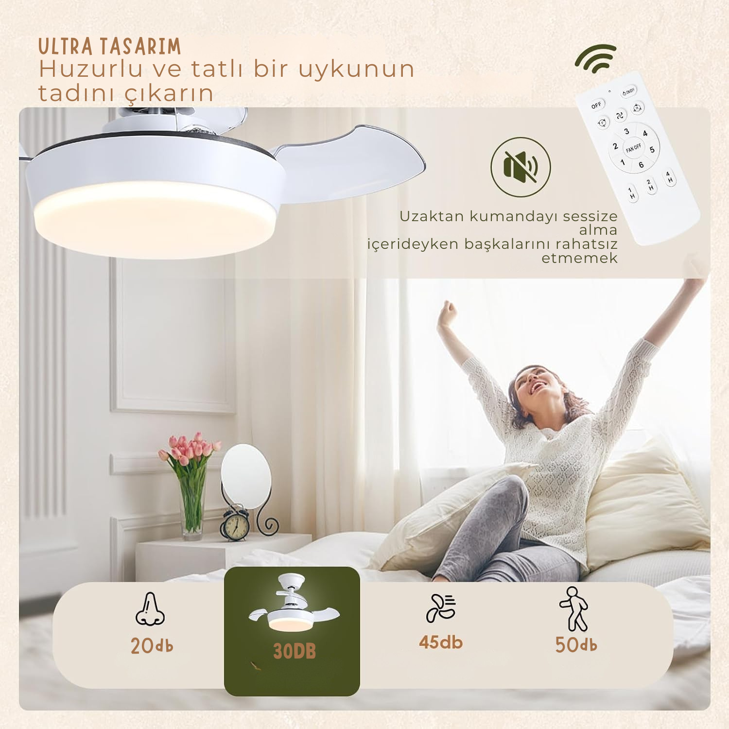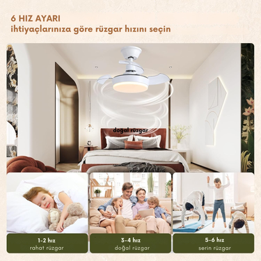 6 Hız Kademesi: Uzaktan kumanda üzerinden ayarlanabilen 6 farklı hız seviyesiyle konforlu hava sirkülasyonu.