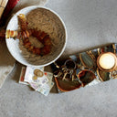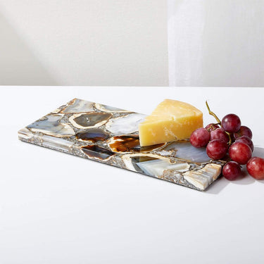Agate Servis Tahtası, doğal akik taşının eşsiz renk ve desenleriyle şık bir sunum aracı. Peynir, tatlı ve şarküteri ürünleri için mükemmel. Masa ve tezgah yüzeylerini koruyan köpük keçe tabanıyla uzun ömürlü kullanım.
