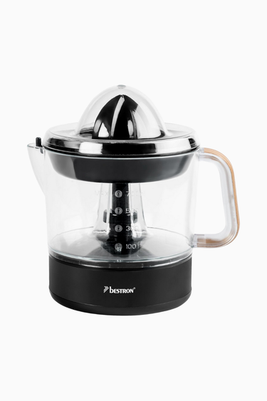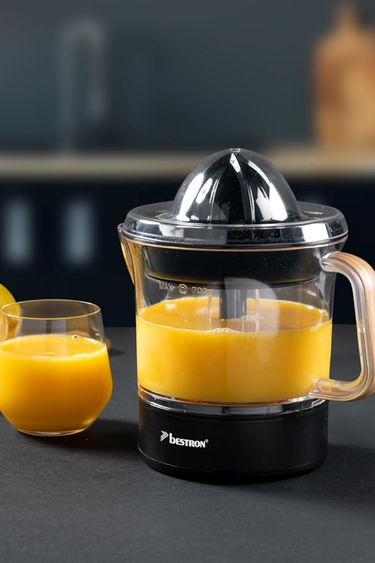 Bestron narenciye sıkacağı, 0.7 L haznesi, çift yönlü döner motoru ve iki farklı sıkma konisiyle taze meyve sularını zahmetsizce hazırlar. Şık siyah–ahşap tasarımı, aroma kapağı ve kolay temizlenen yapısıyla premium bir sıkma deneyimi sunar.