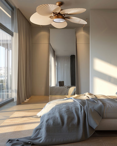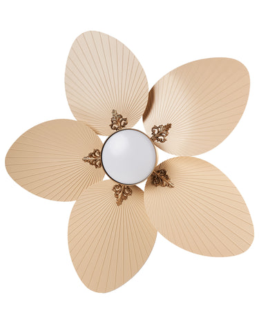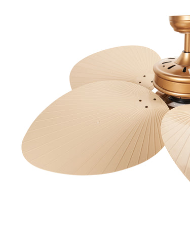 Altın ve bej renkli bu gösterişli model, ortam aydınlatması olarak da mükemmel bir işlev görür. CE sertifikalı ve el işçiliği detaylarıyla benzersizdir. 3 farklı fan hızına ve sıcak, nötr, soğuk olmak üzere 3 ışık sıcaklığı moduna sahiptir. Uzaktan kumanda ile kontrol edilebilmesi sayesinde konforlu kullanım sunar; ayrıca zamanlayıcı fonksiyonu, ürünü gece boyu zahmetsizce kullanmanıza olanak tanır.
