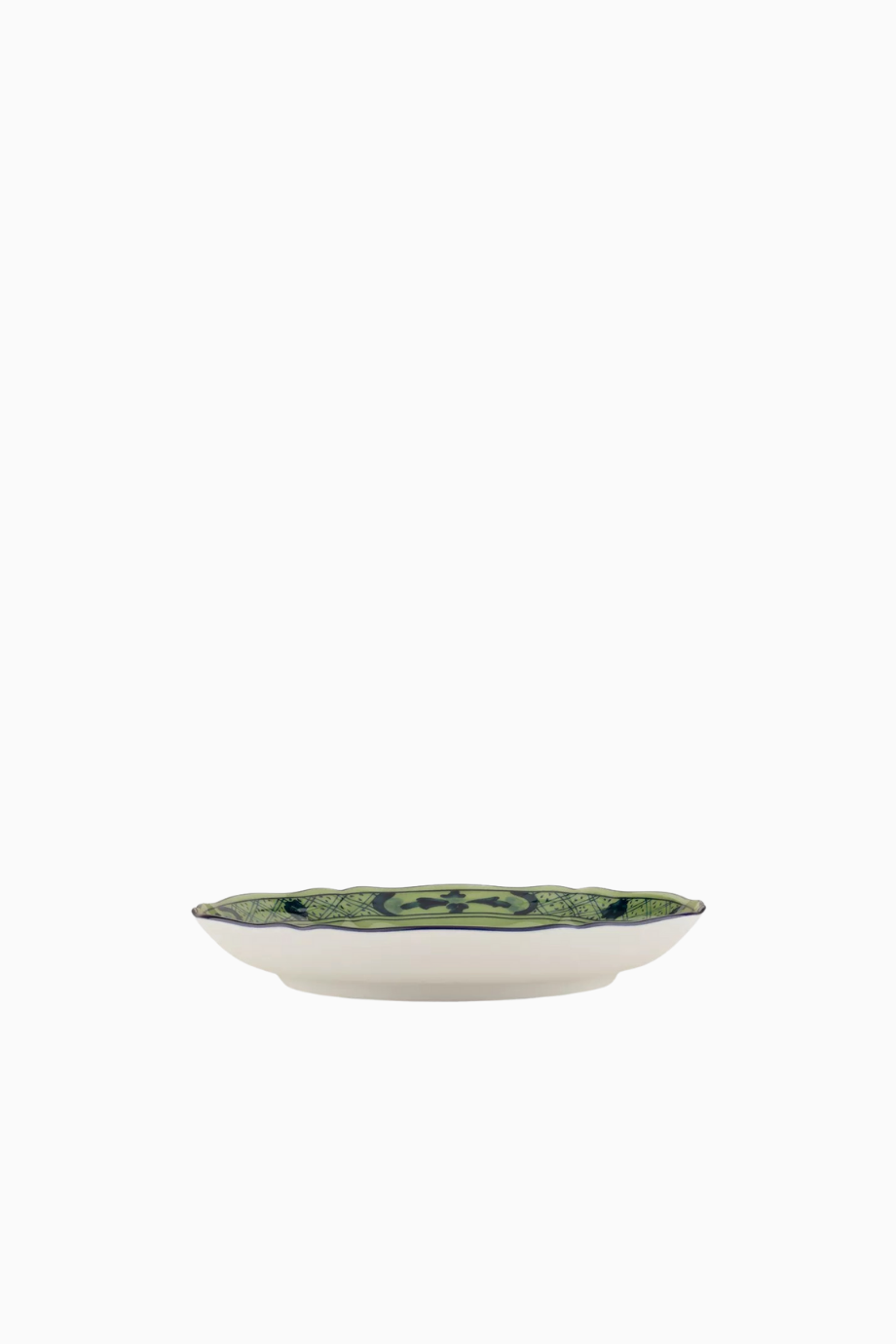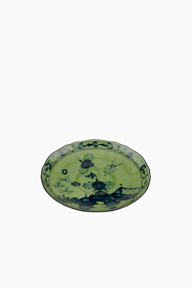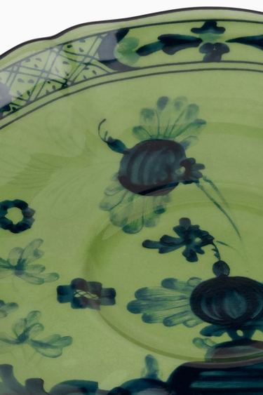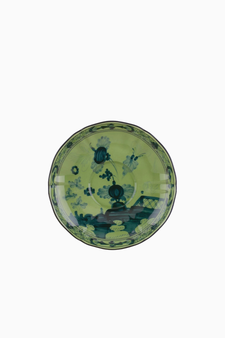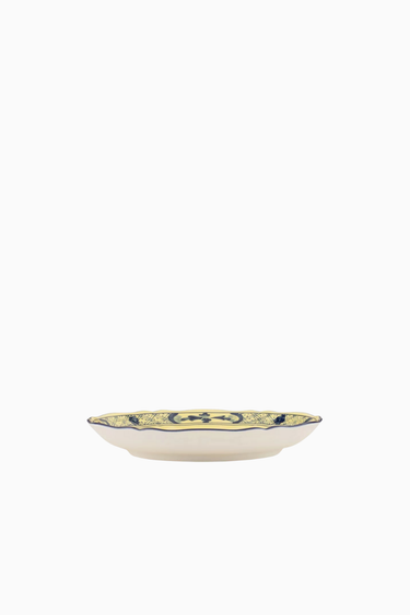 Ginori 1735 Antico Doccia çay tabağı, 15 cm boyutuyla zarif çay sunumları için ideal bir parçadır. Rengini altın yaldız detaylarla buluşturan bu porselen parça, klasik karanfil desenini modern yorumla sunar. Koleksiyonun diğer parçalarıyla mükemmel uyum sağlar.