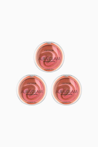 Catrice Aura Glam Balm Highlighter 3’lü Set, pembe ve bronz tonların birleştiği ışıltılı dokusuyla doğal bir parlaklık sunar. Hafif balsam formülü kolayca karışır, tüm cilt tipleri için uygundur. Vegan, yağsız, parfüm, alkol ve paraben içermez. Mikro plastik ve nano parçacık içermeyen formülüyle cilde zarif bir ışıltı kazandırır.