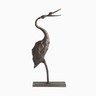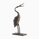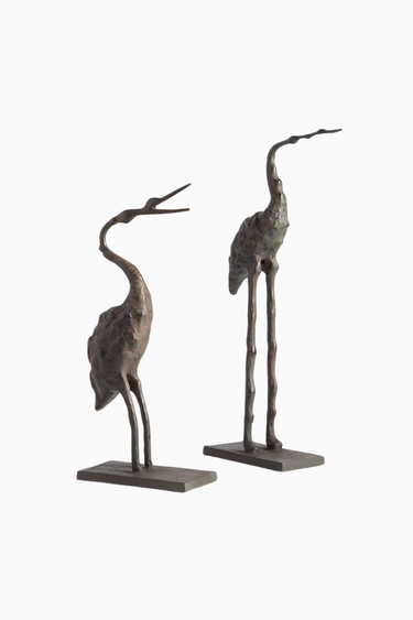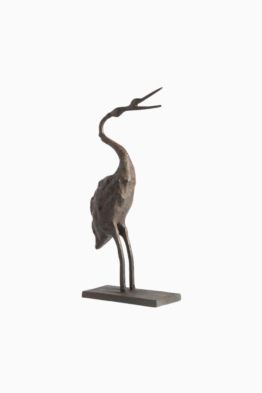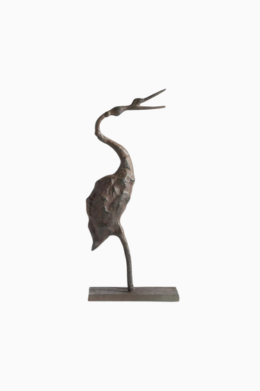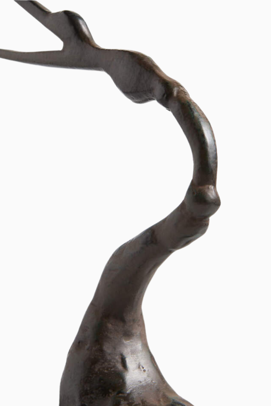 Aves Small Metal Crane Sculpture, zarif formu ve el işçiliğiyle öne çıkan dekoratif bir sanat parçasıdır. Dökme alüminyumdan üretilen heykel, elde oyulup cilalanarak organik bir dokuya ve rustik siyah yüzeye kavuşur. Sehpa, kitaplık veya şömine üzerinde sofistike bir atmosfer yaratır.
