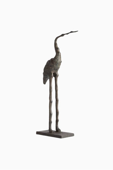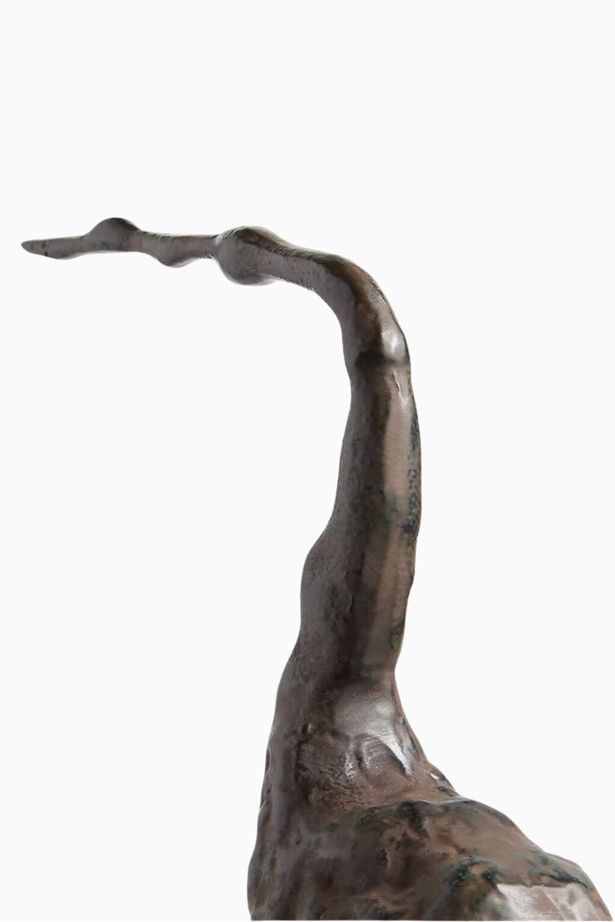 El oyması ve cilalı döküm alüminyumdan üretilmiş Aves turna heykeli, zarif duruşu ve rustik siyah yüzeyiyle ev dekorunuza sofistike bir dokunuş katıyor. Masalarda, raflarda veya şömine üstünde şık bir sahne yaratır.