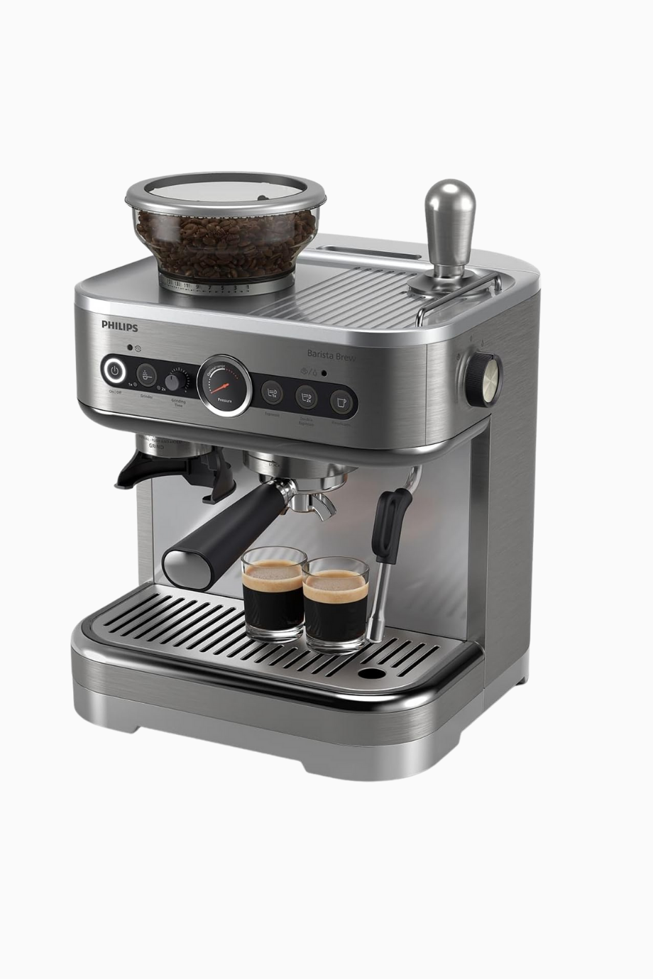 Philips Barista Brew Yarı Otomatik Espresso Makinesi ile evde barista deneyimi. Tek ve çift espresso, Americano seçeneği, 250 g taze çekirdek kabı, 450 ml süt sürahisi ve sezgisel kılavuz ile kremamsı süt köpüğü ve yoğun aroma elde edin. Paslanmaz çelik gövde ve 1350W güç.