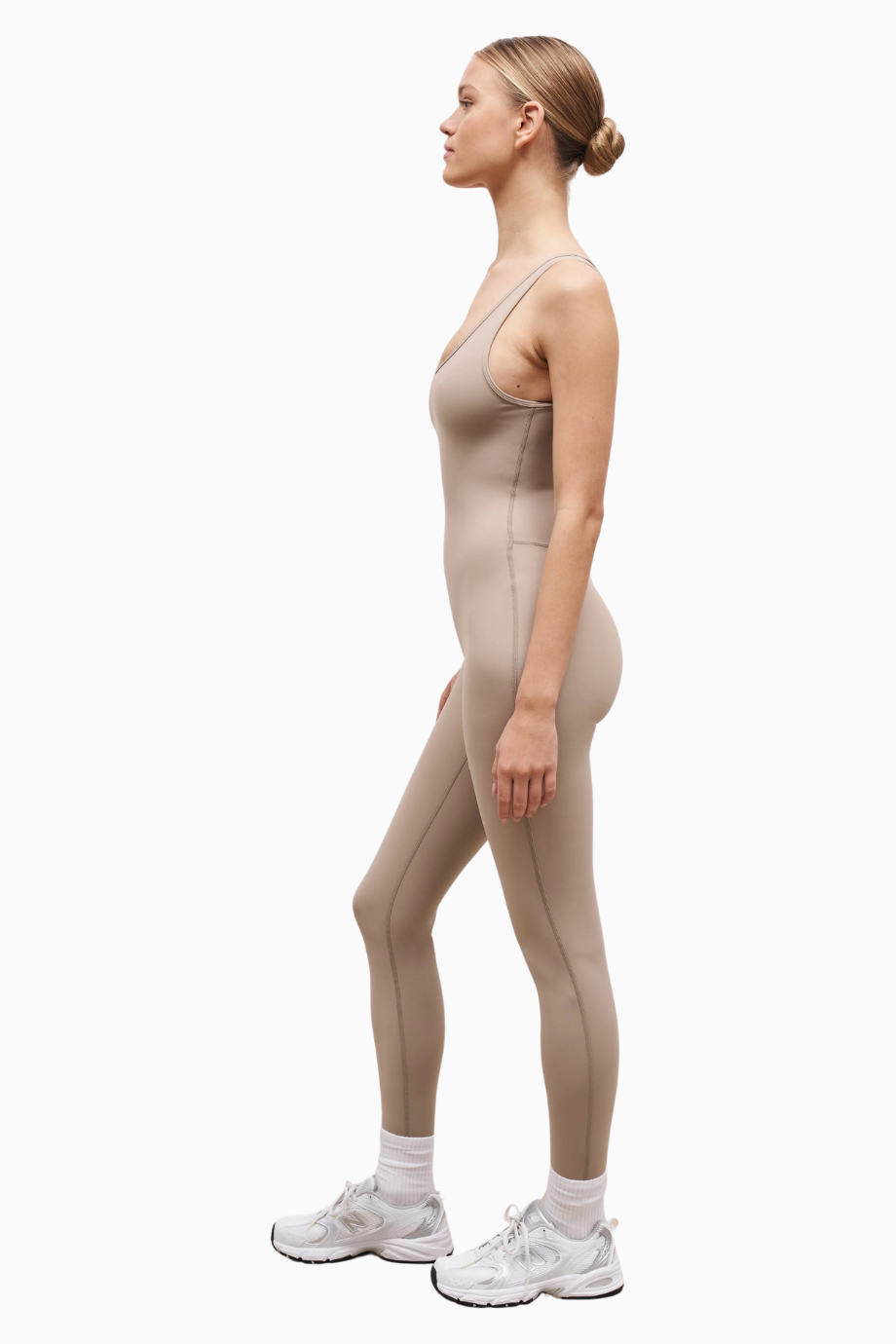 Because Of Alice Base Sculpting Tank Unitard, tam boy bacak ve scoop yaka tasarımıyla vücudu pürüzsüzce sarar. Slim askıları, şekillendirici dikiş detayları ve elastik BASE kumaşıyla günlük ve spor kombinlerde rahatlık ve destek sunar.