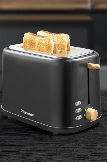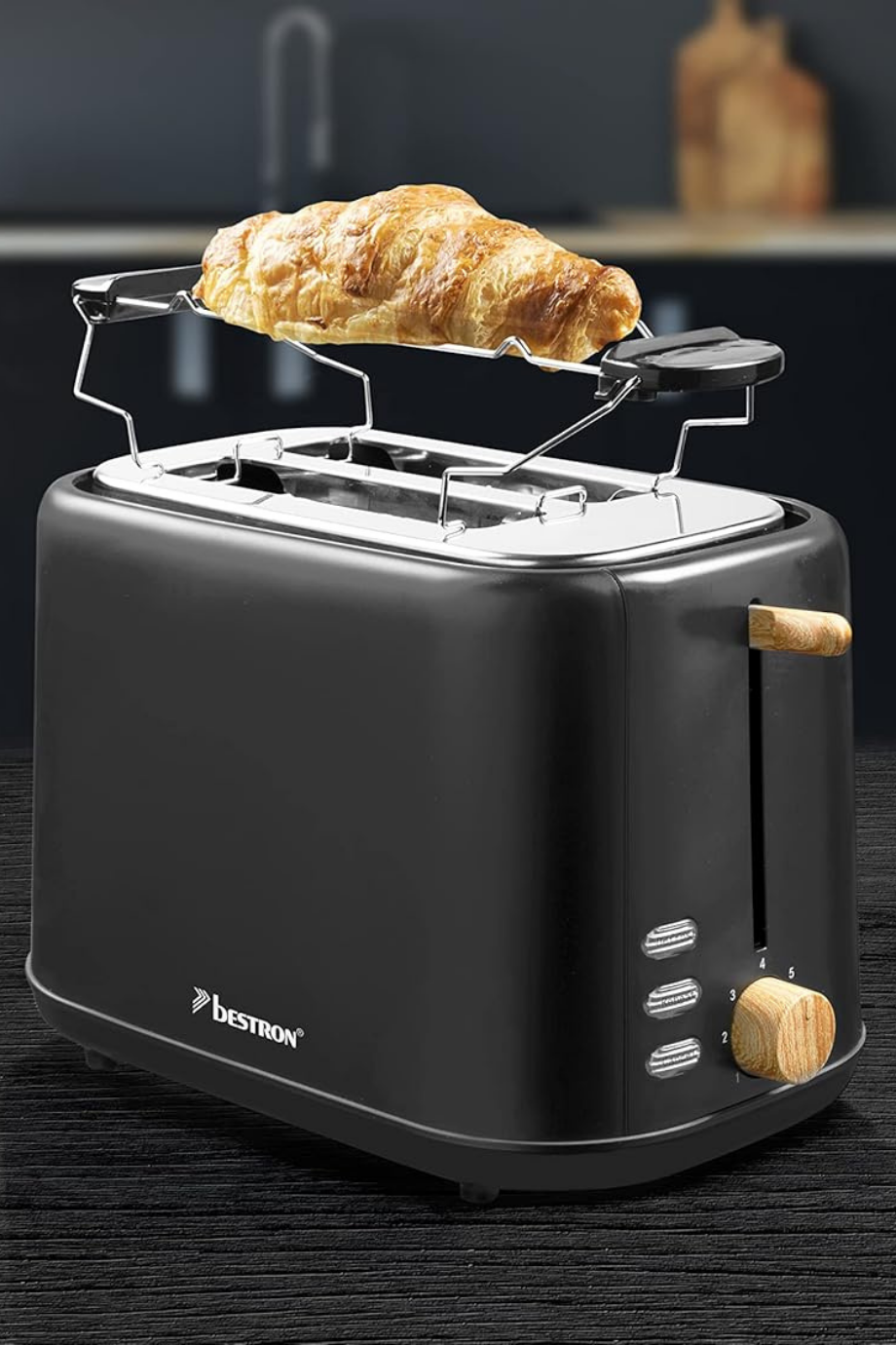 Bestron Black & Wood Toaster, 7 kızartma seviyesi, buz çözme ve ısıtma fonksiyonlarıyla kusursuz kızarmış ekmek sunar. Şık tasarımı, 800W gücü ve çıkarılabilir kırıntı tepsisiyle modern ve üst segment mutfaklara mükemmel uyum sağlar.