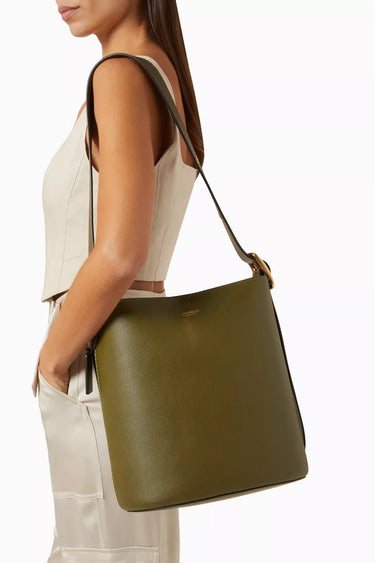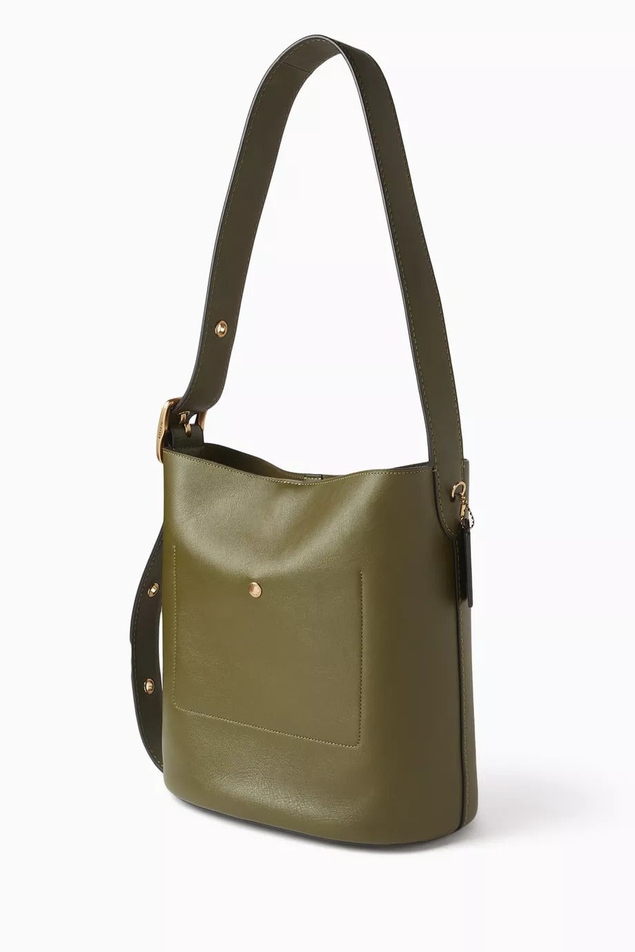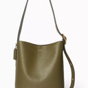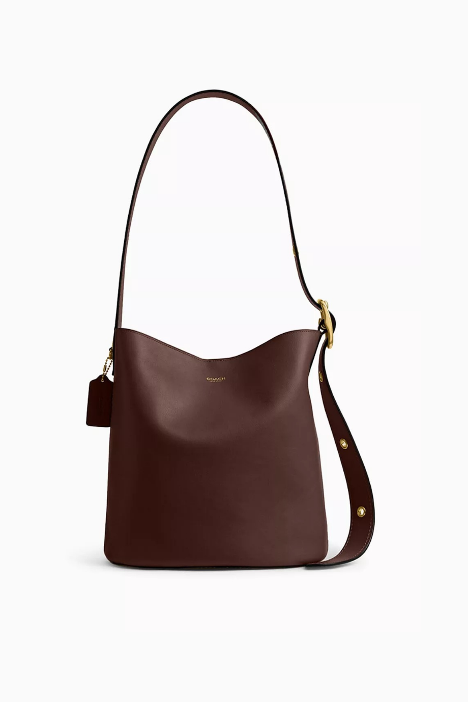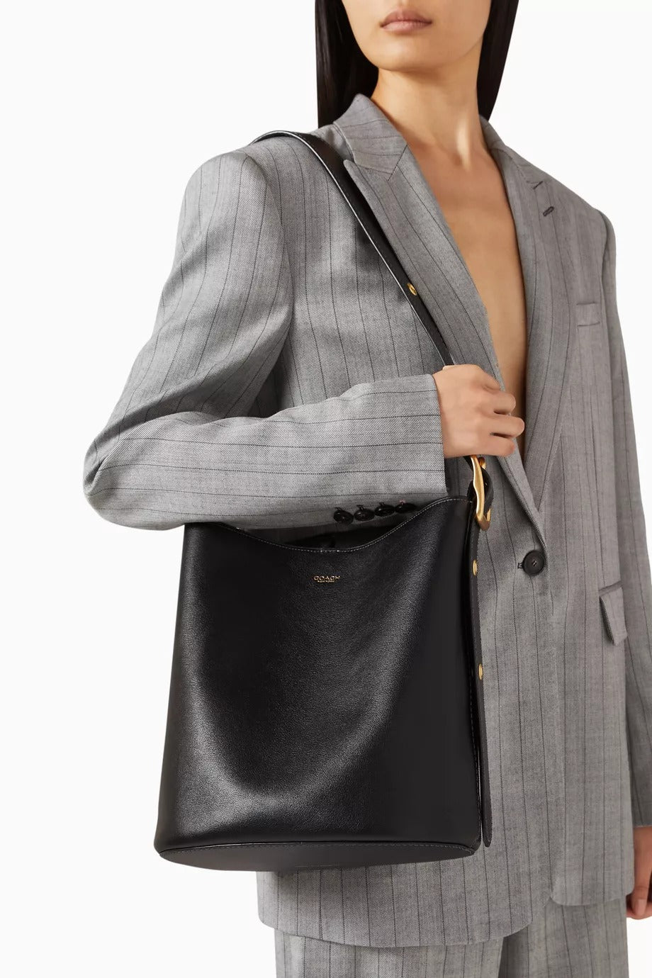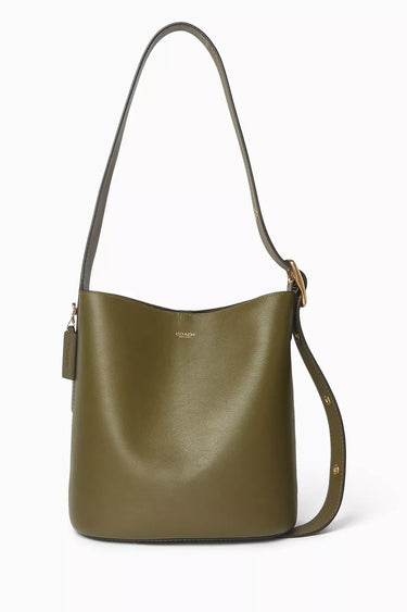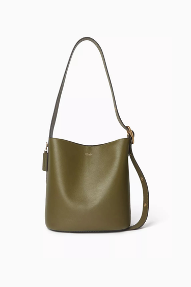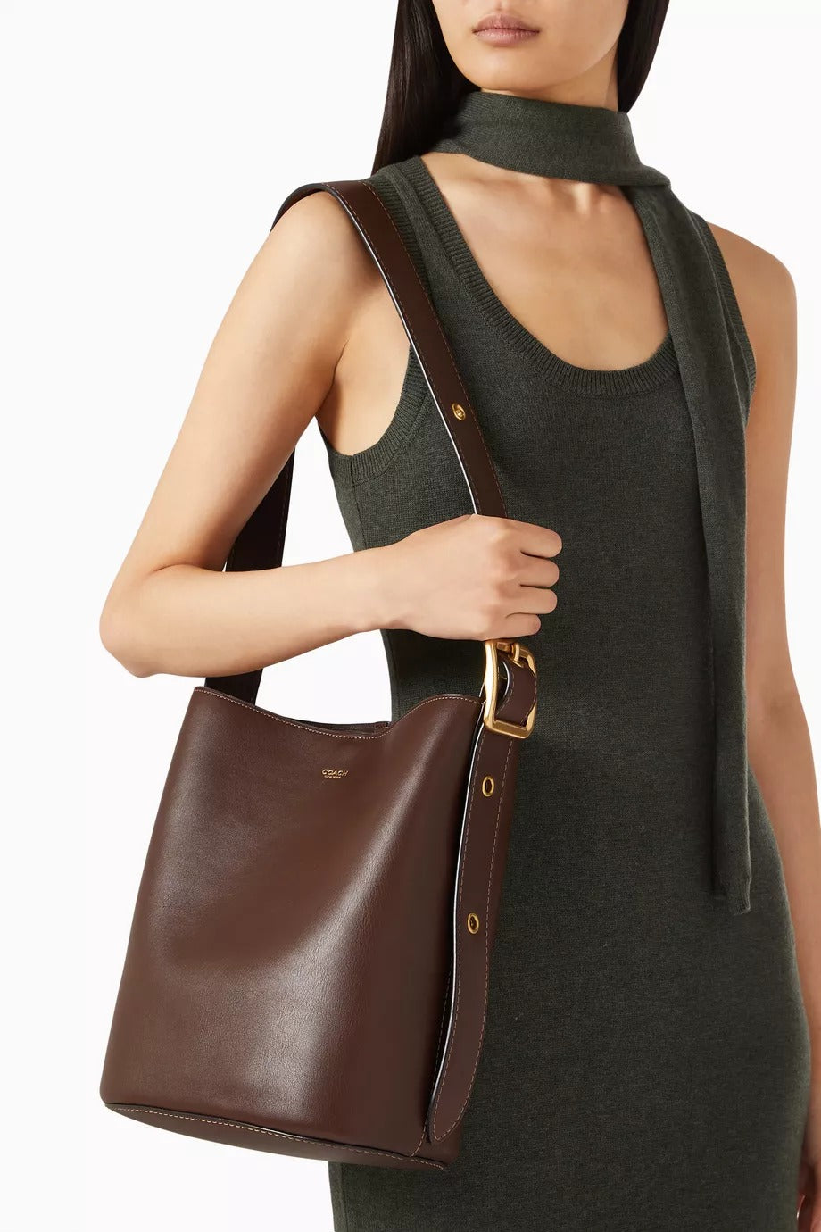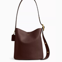 Coach Bleecker Bucket Bag, zamansız şıklığı günlük kullanımla buluşturan sofistike bir tasarım sunuyor. Doğal grenli deriden üretilen heykelsi formu, markanın zarif çizgilerini modern bir yorumla yansıtıyor. Geniş iç hacmi, çıkarılabilir fermuarlı iç cebi ve 33 cm dizüstü bilgisayar uyumu sayesinde fonksiyonel bir kullanım sağlarken; altın tonlu metal aksam, ikonik Coach bagaj etiketi ve mıknatıslı kapanış gibi detaylarla lüksü ön plana çıkarıyor.