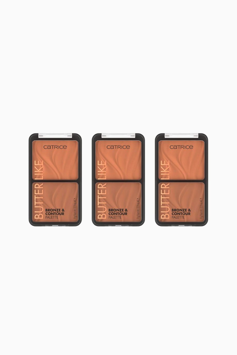 Catrice Butter Like Bronze & Contour Paleti ultra yumuşak dokusu ile cilde doğal bir bronzluk ve tanım kazandırır. Sıcak ve soğuk alt tonlu üçlü pudra formülü kolay karıştırılır, çizgisiz bir görünüm sağlar. Vegan içeriklidir, paraben, mikro plastik ve nano partikül içermez.