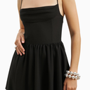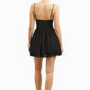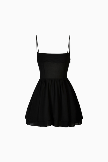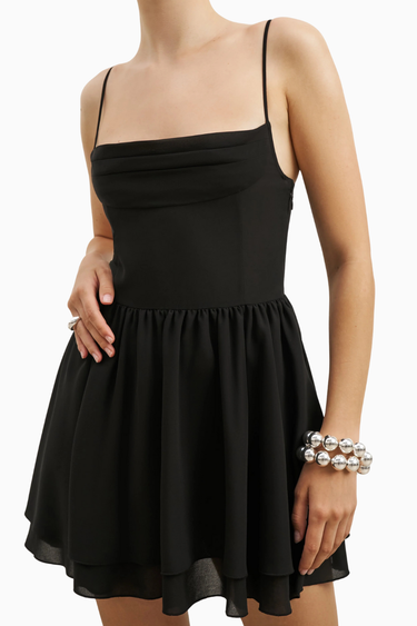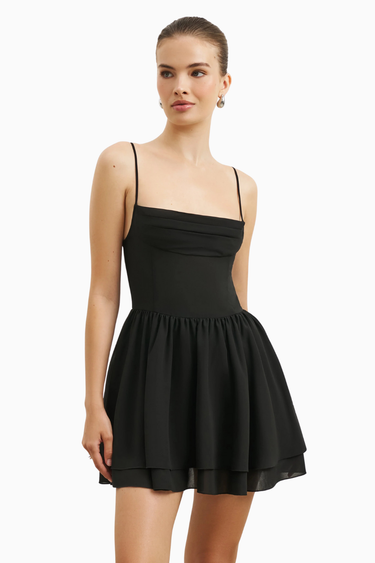 Because Of Alice Chiffon Tiered Babydoll Mini Dress, büzgülü göğüs detayı, ayarlanabilir ince askıları ve kat kat kısa eteğiyle romantik bir siluet sunar. Hafif şifon kumaşı ve zarif kesimiyle feminen, zarif ve konforlu bir görünüm sağlar.