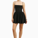 Chiffon Tiered Babydoll Mini Dress Ruched Bust Cami Dress Kadın Elbise