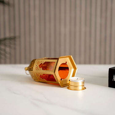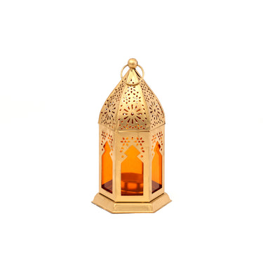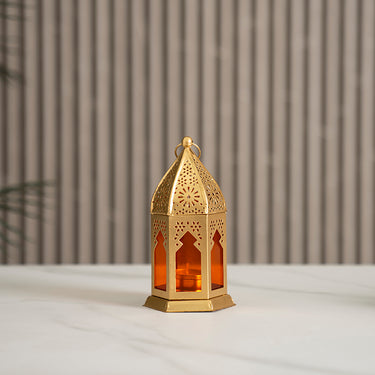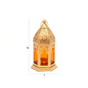 Chloe Altın Metal Kesim Desenli Fener 16 cm, Modern Tasarım