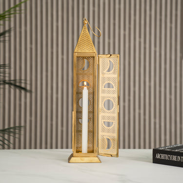 Chloe Altın Metal Kesim Desenli Fener 51.5 cm, Modern Tasarım