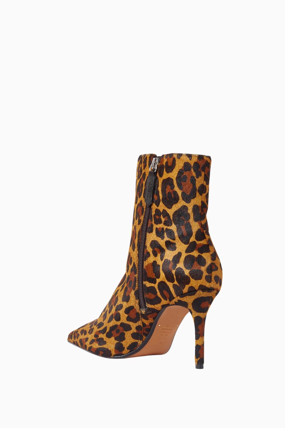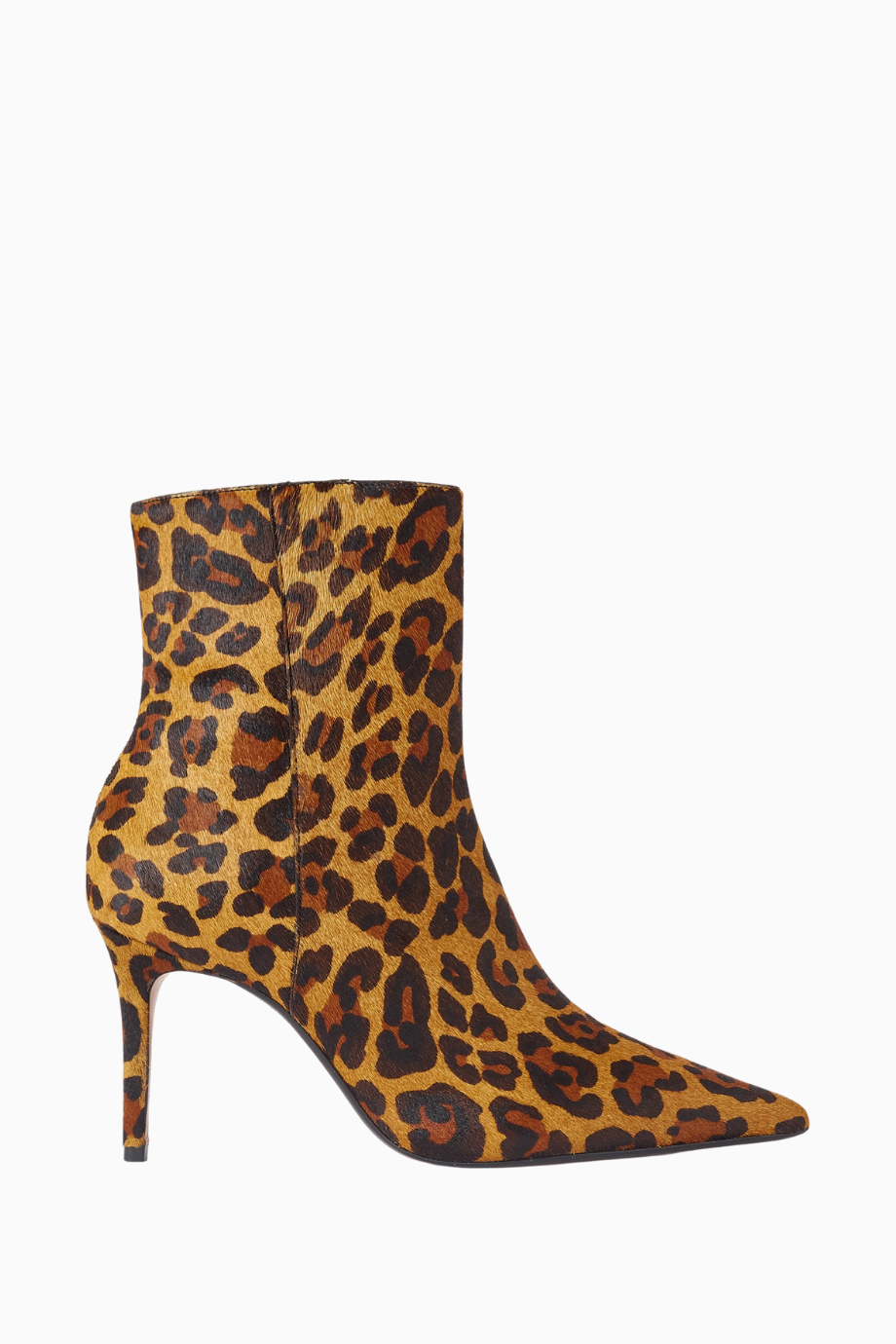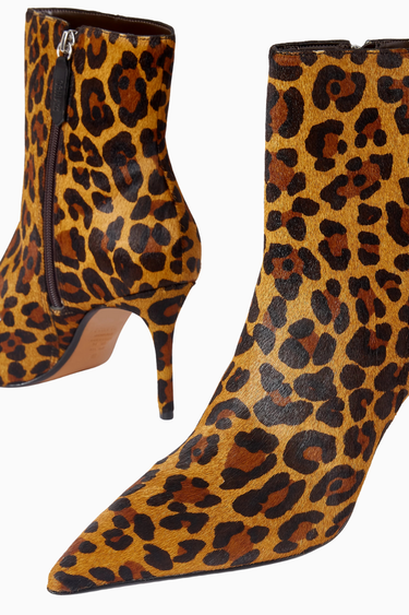 Schutz City Natural 85 ankle boots, leopar baskılı dana kuzu derisi ve sivri burun tasarımıyla dikkat çekici bir feminen stil sunar. 85mm stiletto topuk ve yan fermuar detayı ile hem şık hem pratik bir kullanım sağlar. Geçiş mevsimleri için ideal, sofistike bir seçimdir.