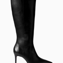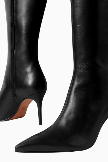 City Natural 85 Siyah Deri Diz Boyu, Blok Topuklu Çizme