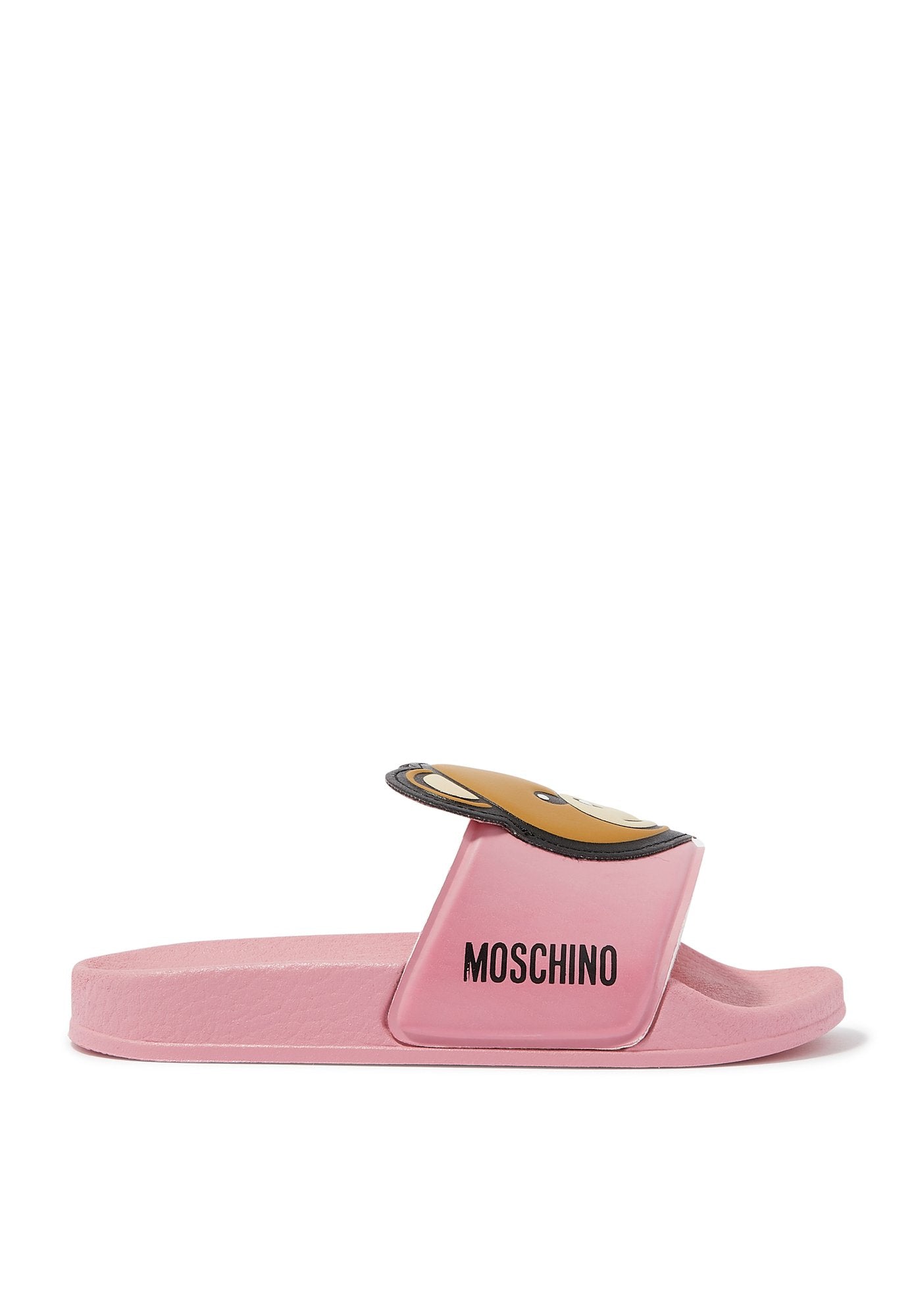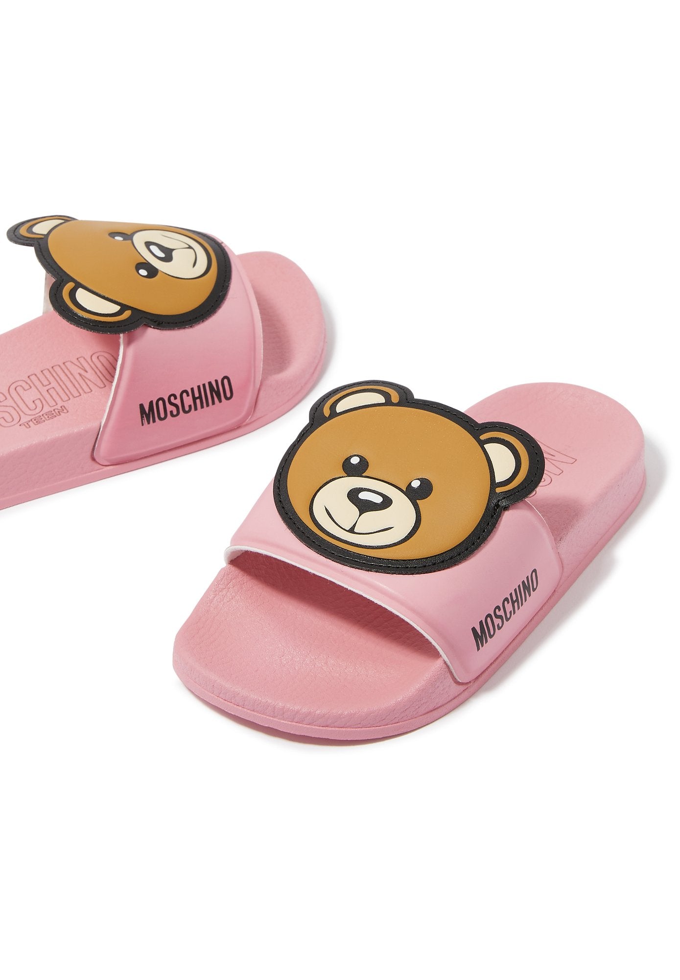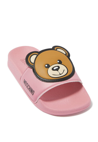 Çocuk Teddy Kauçuk Havuz Terlikleri - Parlak Pembe