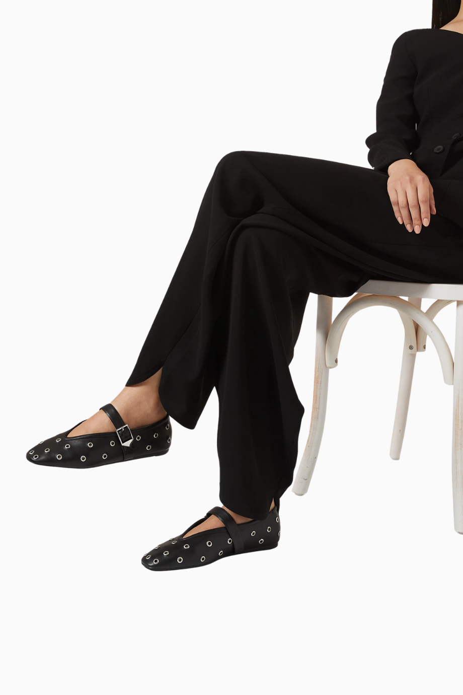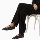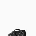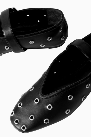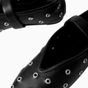 Cool Ballerina Siyah Deri Göz Detaylı, Ayarlanabilir Bantlı Lüks ve Modern Balerin Ayakkabı