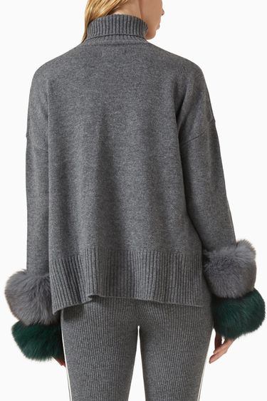Izaak Azanei Cropped Polo Sweater, modern kesimi ve lüks yün-kaşmir karışımıyla sofistike bir stil sunar. Tilki kürkü manşetleri sayesinde hem sıcaklık hem de zarif bir dokunuş sağlar. Kış kombinlerine hem şık hem işlevsel bir seçenek ekler.