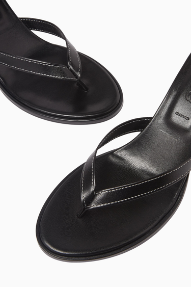 Daphne 75, Siyah Deri Thong Topuklu Sandalet