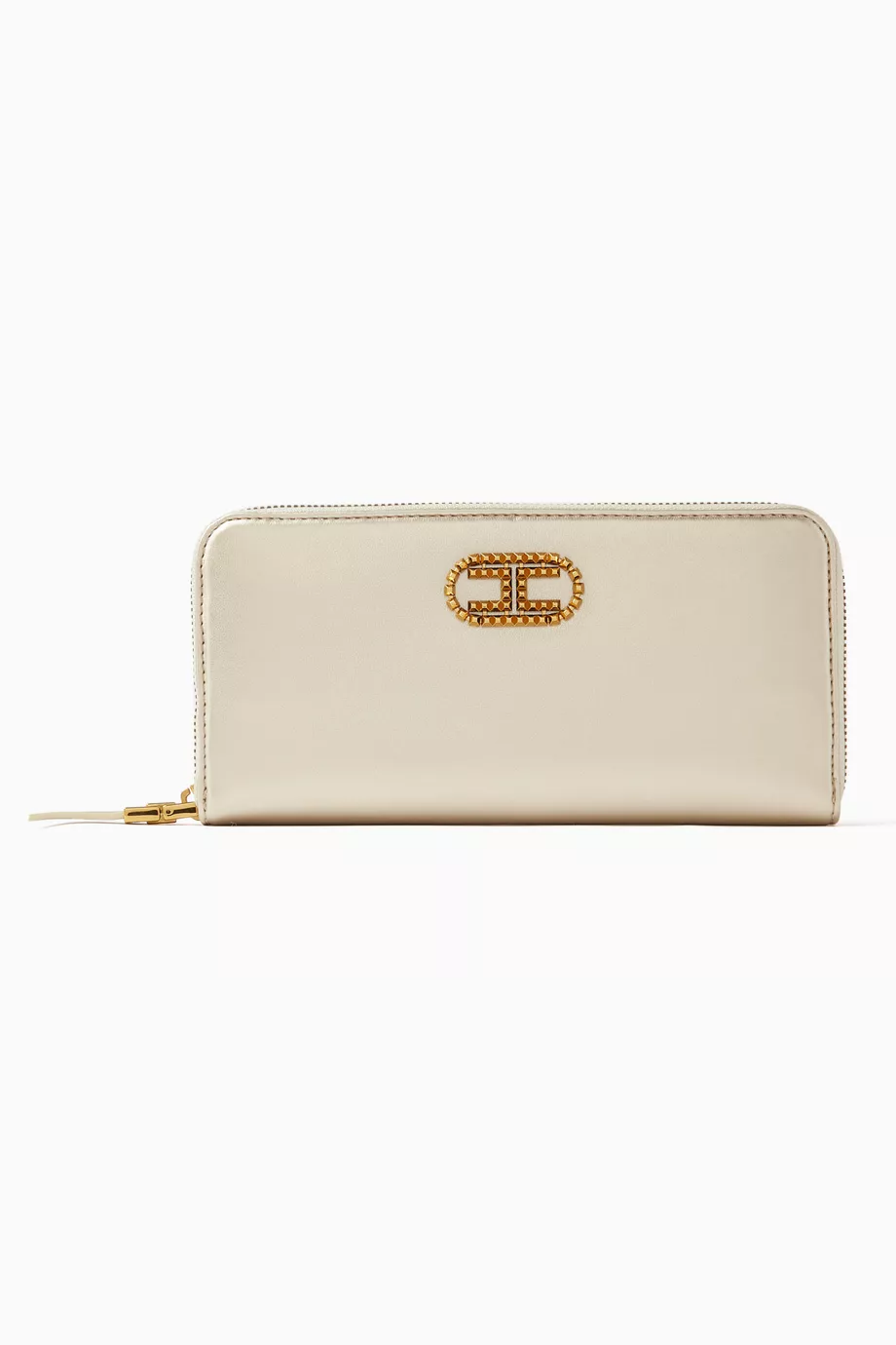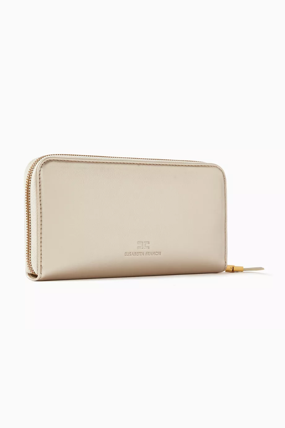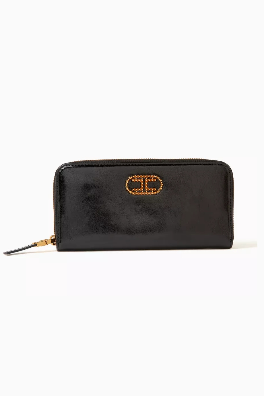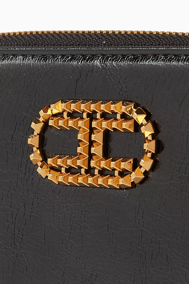 Elisabetta Franchi Derin Gece Cüzdan, eko deri malzeme, kartlık ve fermuarlı bölmeleriyle işlevsellik ve şıklığı bir arada sunar. Çivili logo detayıyla zarif bir görünüm kazandırır.