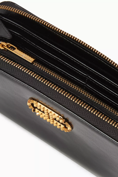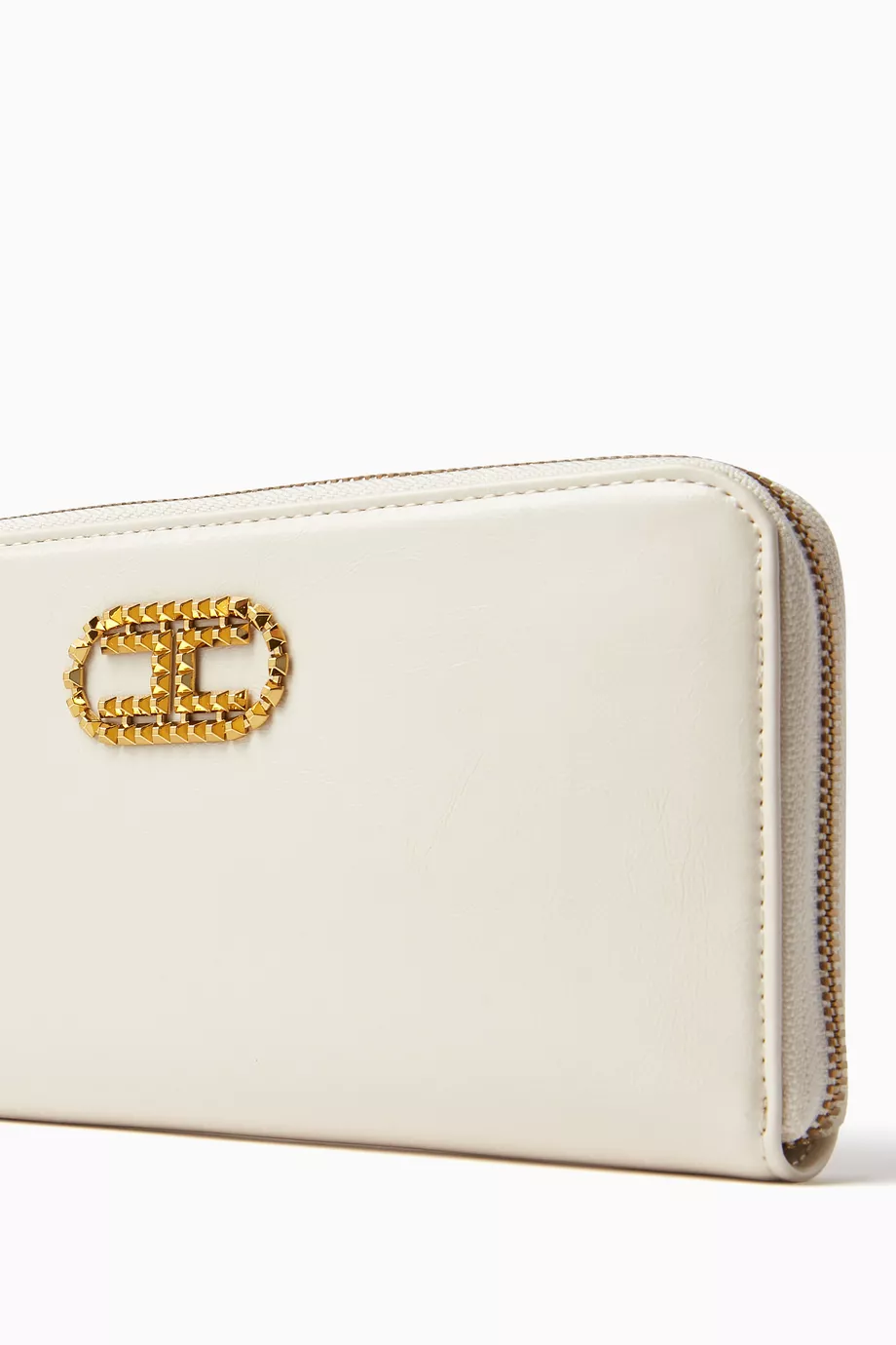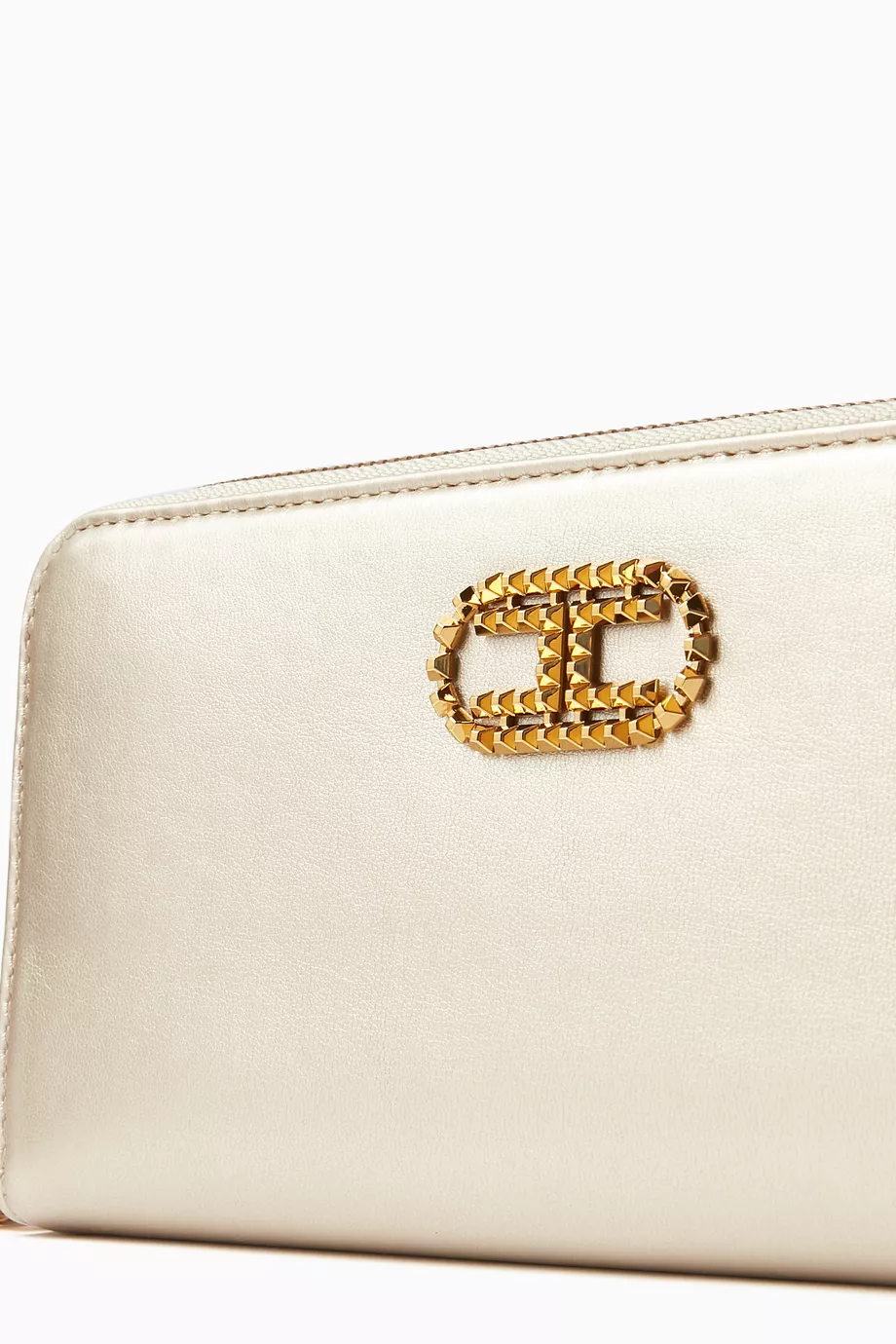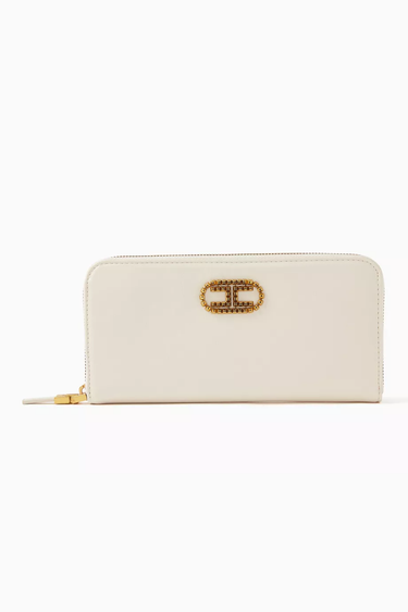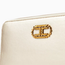 Elisabetta Franchi Derin Gece Cüzdan, eko deri malzeme, kartlık ve fermuarlı bölmeleriyle işlevsellik ve şıklığı bir arada sunar. Çivili logo detayıyla zarif bir görünüm kazandırır.