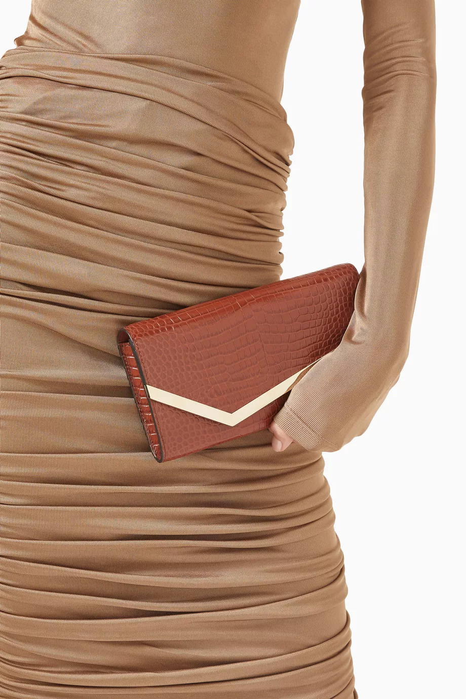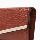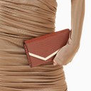 Dokulu Deri Emmie Clutch, Şık & Zamansız, Altın Tonlu Metal Kenar