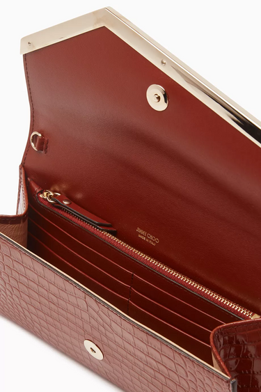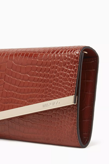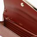 Dokulu Deri Emmie Clutch, zarif dokusu ve altın tonlu metalik kenarlarıyla klasik şıklığı modern çizgilerle birleştirir. Asimetrik kapağı ve çıkarılabilir zincir askısı sayesinde elde ya da omuzda taşınabilen çok yönlü bir gece çantasıdır.