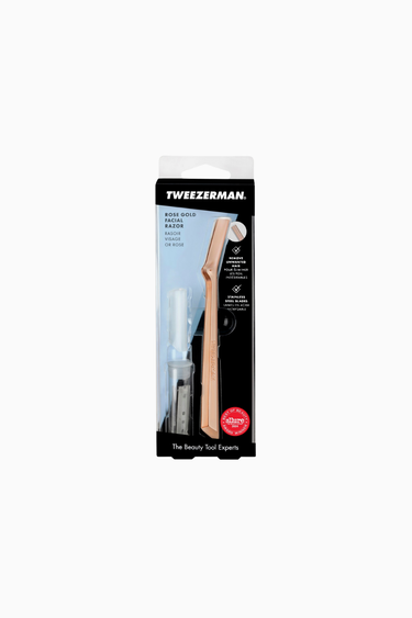 Tweezerman Facial Razor Rose Gold, yüz ve ince tüyleri nazikçe temizleyen lüks bir yüz bakım aletidir. Rose gold tasarımıyla şık görünüm sunar, cilde zarar vermeden pürüzsüz ve ışıltılı bir cilt sağlar.