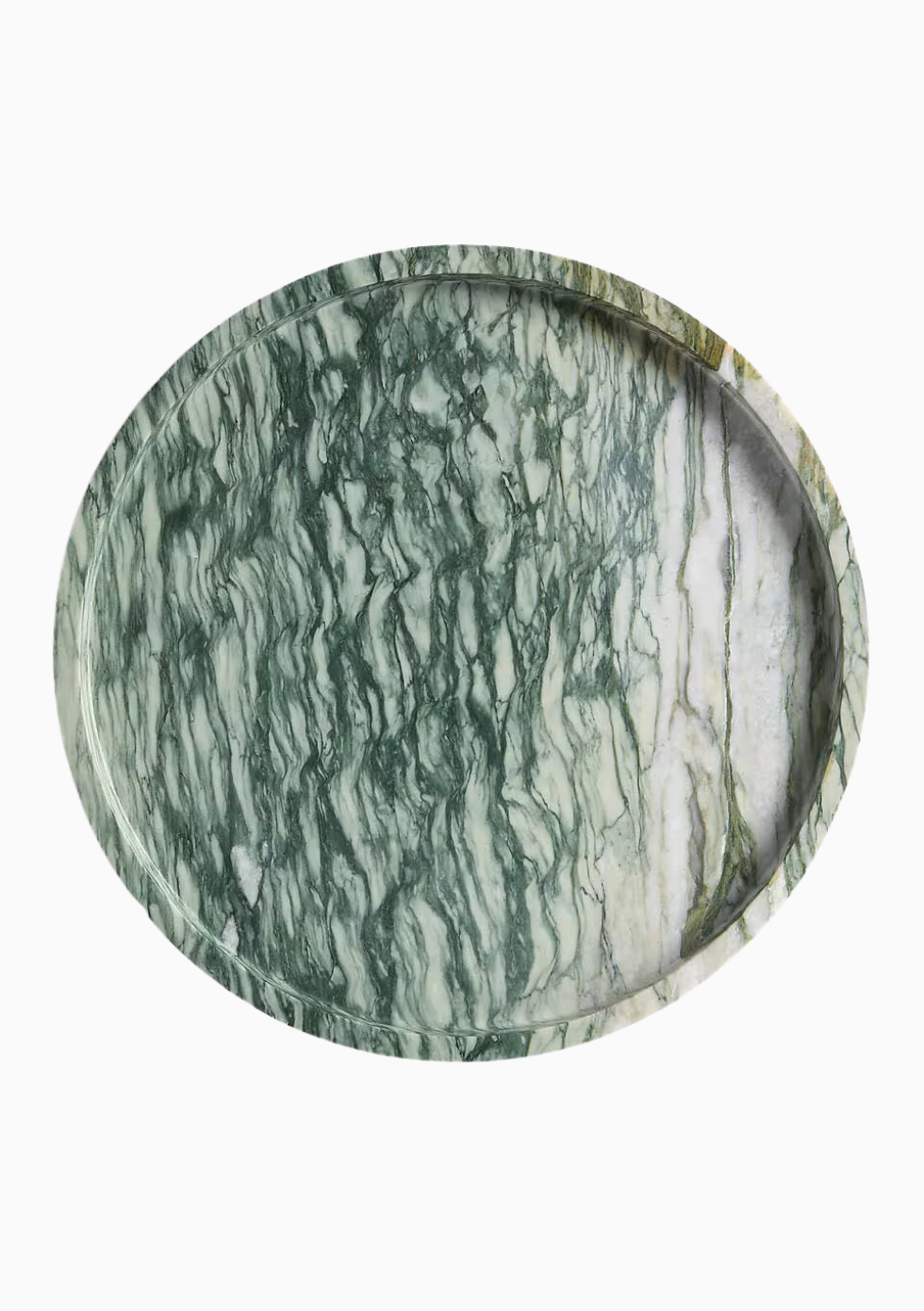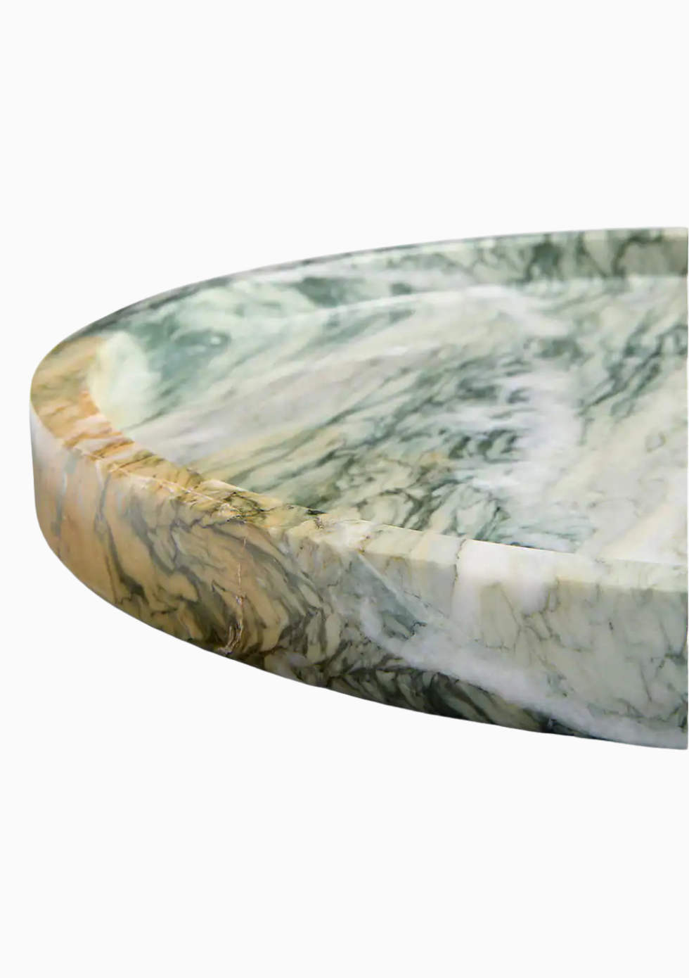 Fern Green Yuvarlak Mermer Tepsi, 12,5” El Oyması Doğal Taş Lüks Sunum Parçası