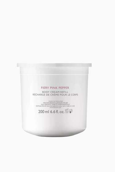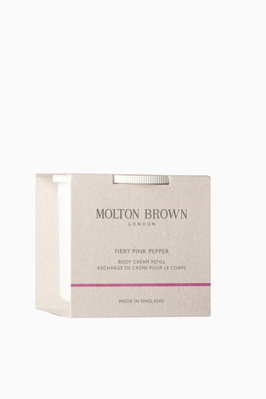 Orijinal Fiery Pink Pepper vücut kremi refill; shea, kakao ve E vitaminiyle zenginleştirilmiş formülüyle cildi yoğun biçimde nemlendirir. Pembe biber, zencefil ve paçuli ile harmanlanan cesur ve modern koku, gün boyu enerjik bir his bırakır.