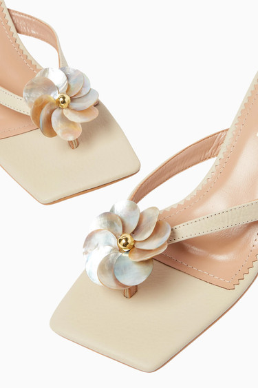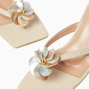 Fleur 55, Çiçek Detaylı Deri Thong Mule Sandalet, Zarif Off-White