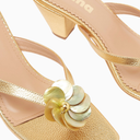 Fleur 55, Metalik Deri Çiçek Detaylı Lüks Thong Mule