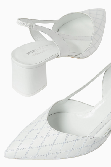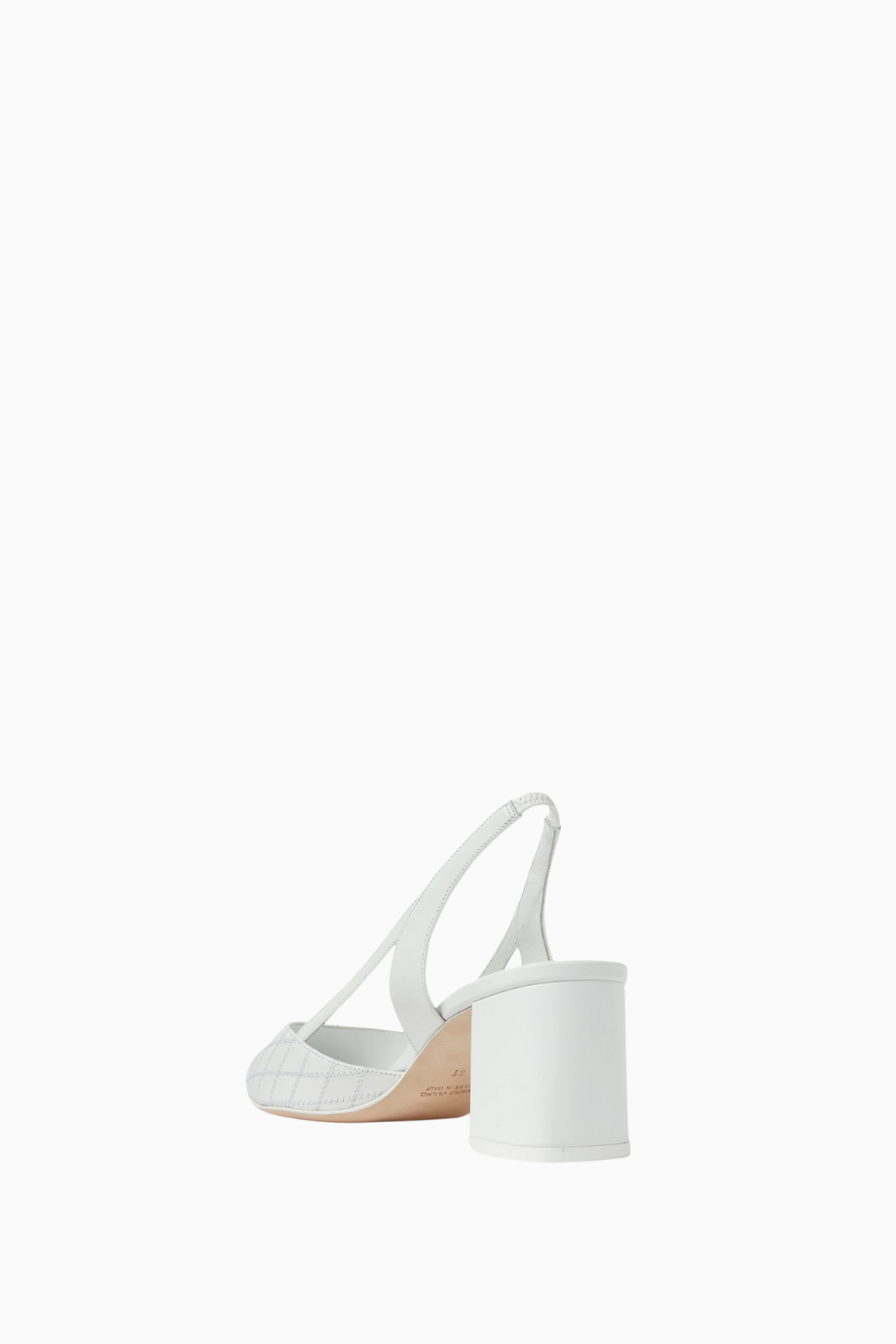 Flonda Slingback Pumps, Beyaz Nappa Deri, Blok Topuk, Şık ve Zarif İtalyan İşçiliği
