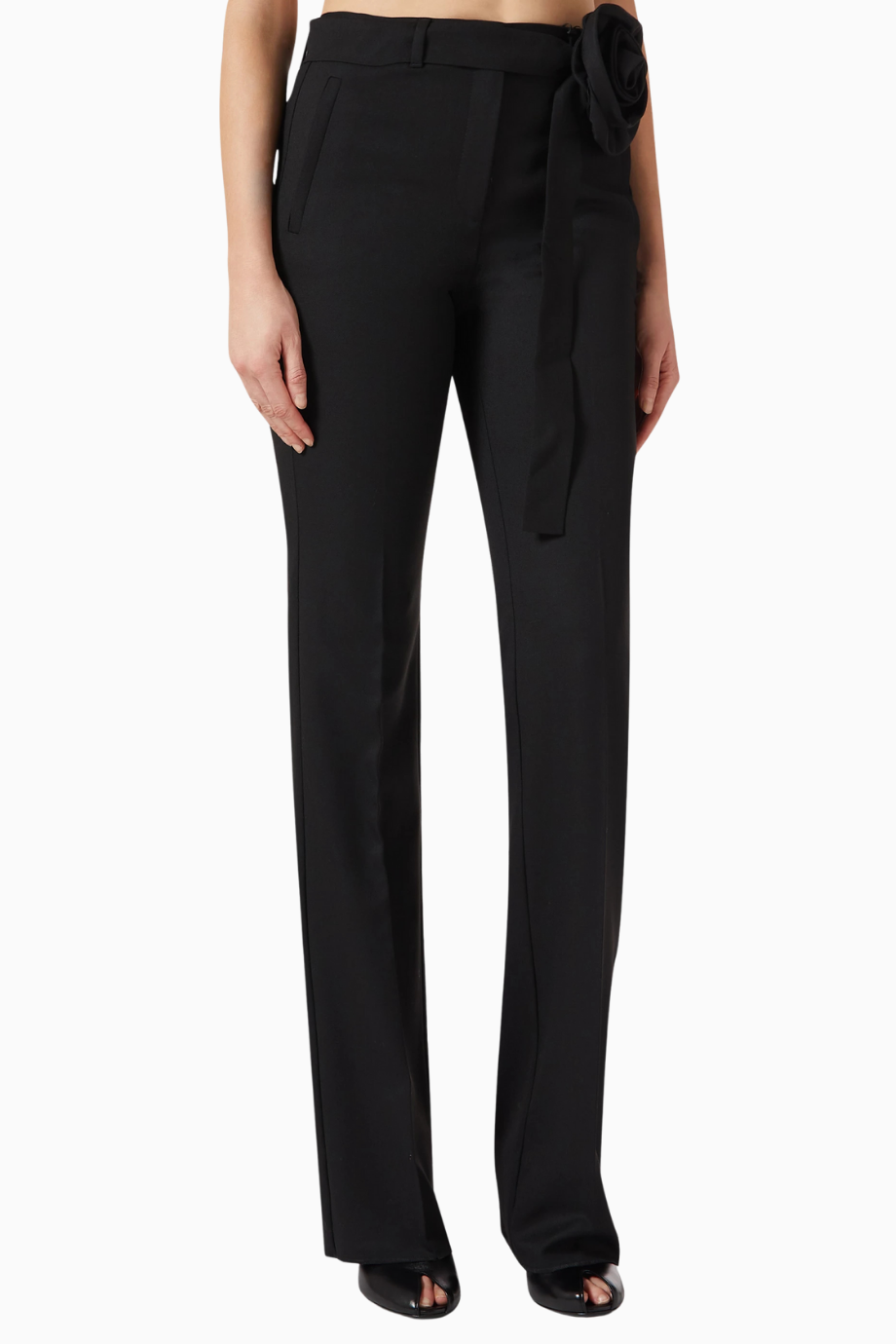 Fosca Viskon Karışımlı Pantolon, Çiçek Aplikeli Dekoratif Kemer